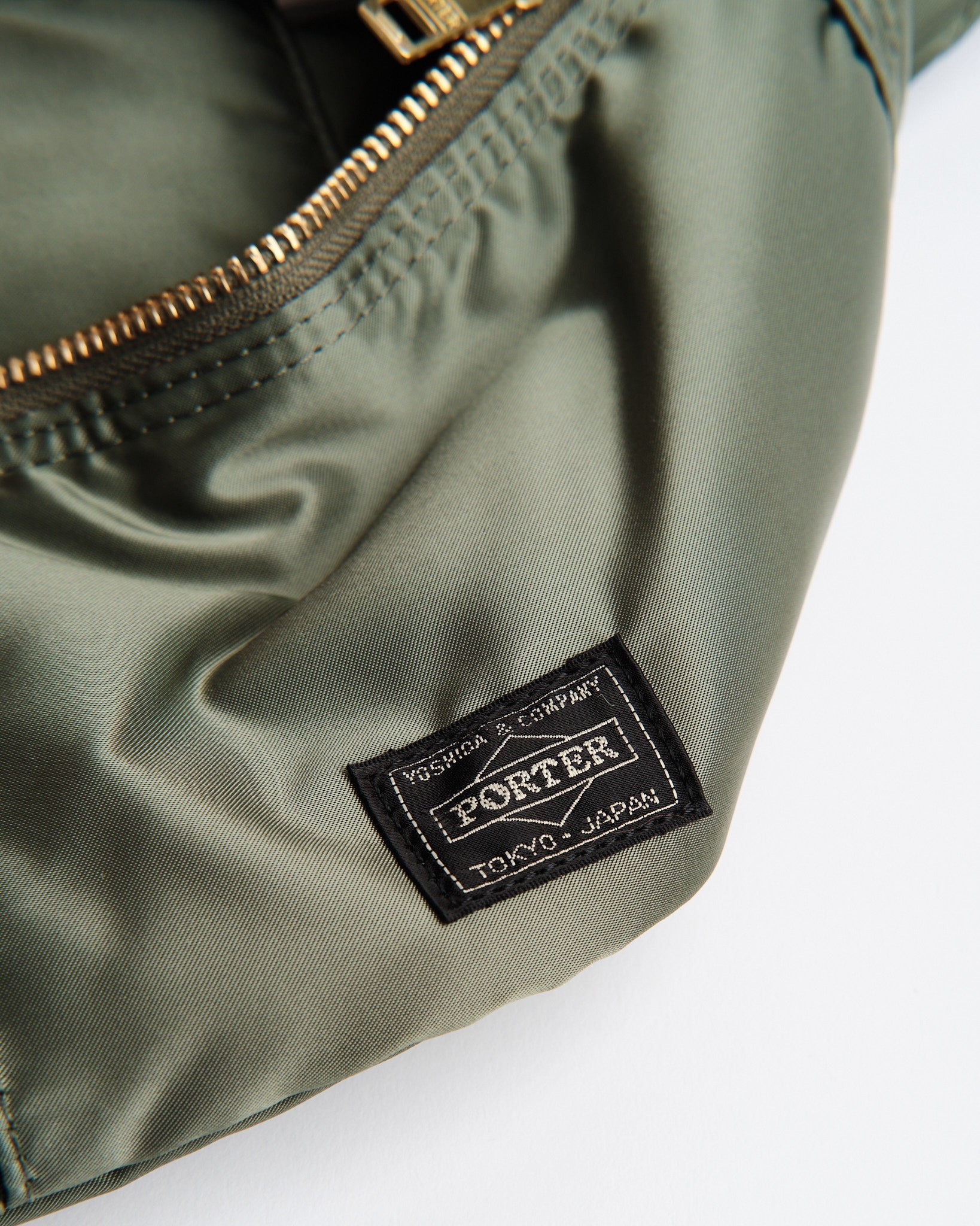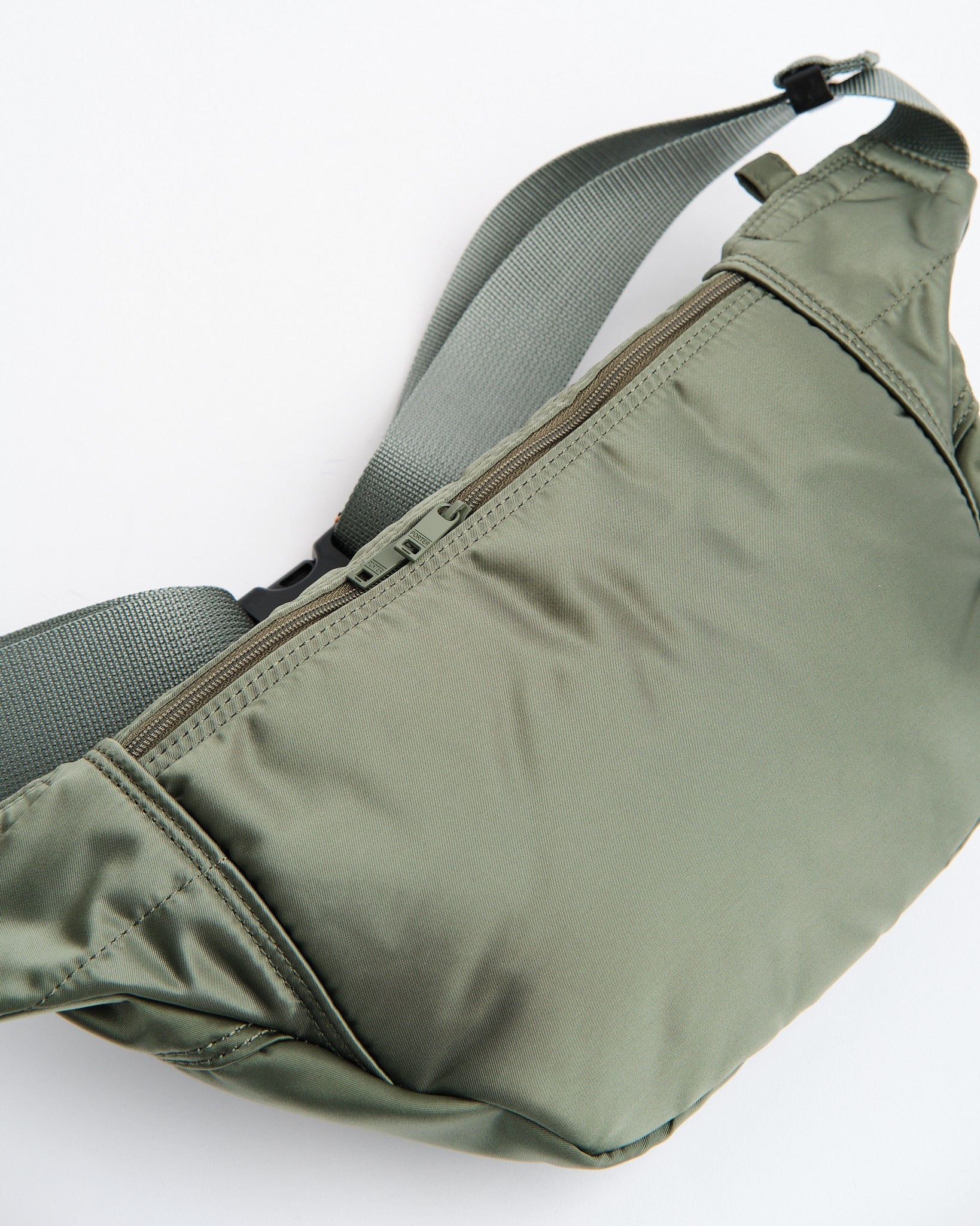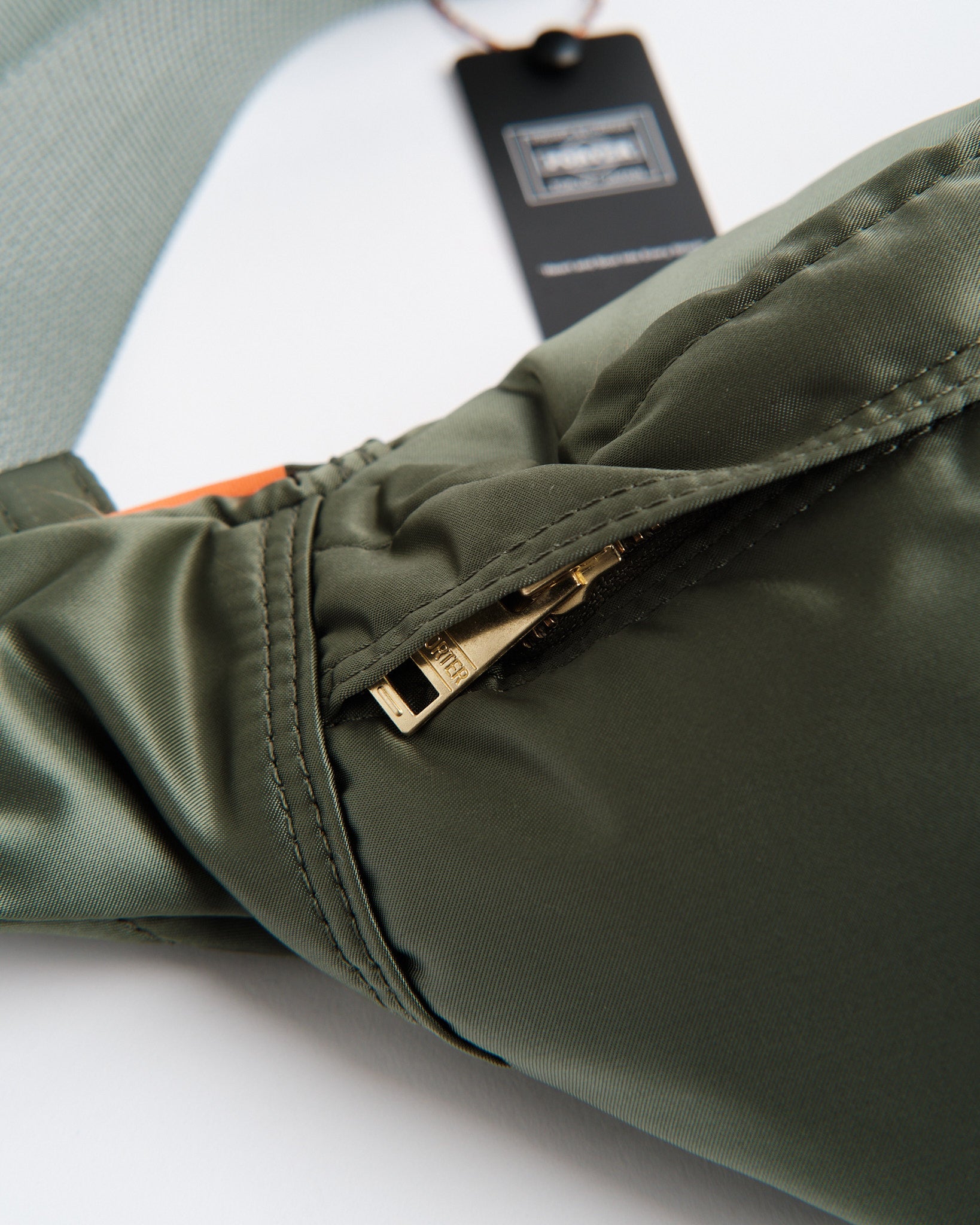 Esittelyssä PORTER YOSHIDA 622-76629-30 TANKER VYÖLAUKKU (S) SAGE GREEN -värissä. Osa Tanker-sarjaa, joka esiteltiin ensimmäisen kerran vuonna 1983, tämä vyölaukku hyödyntää ainutlaatuista kangasta, joka on alun perin luotu Yhdysvaltain ilmavoimien lentotakin MA 1:lle, ja sisältää kirkkaan pelastusoranssin sisävuorin. Sen koko huomioon ottaen se sopii kätevästi vartalolle ja sitä voidaan käyttää sekä vyölaukkuna että olkalaukkuna. Ihanteellinen olennaisuuksien, kuten älypuhelinten ja lompakoiden kantamiseen, siinä on kolme taskua, kaksi sisätaskua, vyötasku ja takavetoketjutasku. Kerrostettu kangas, joka on valmistettu nailontvillistä, polyesteripuuvillasta ja nailontafetasta, on kevyt, mutta kestävä, mikä osoittaa Yoshida&Co:n huomion yksityiskohtiin käsityössä joka käänteessä.