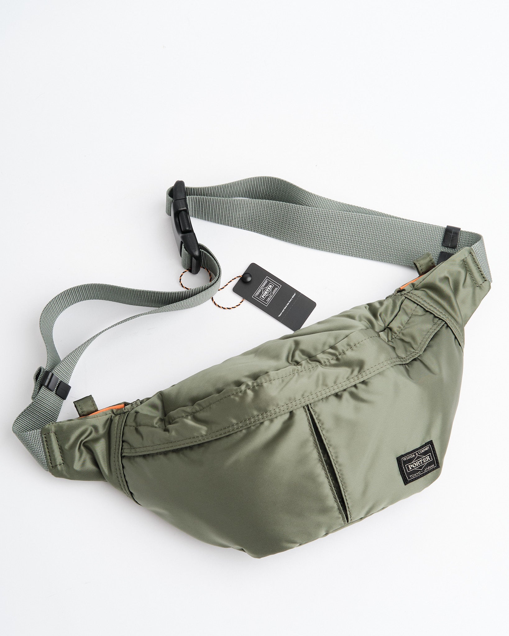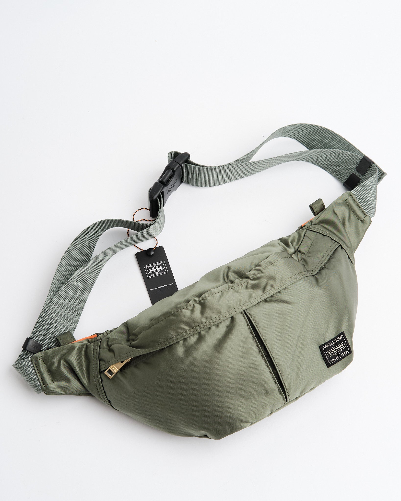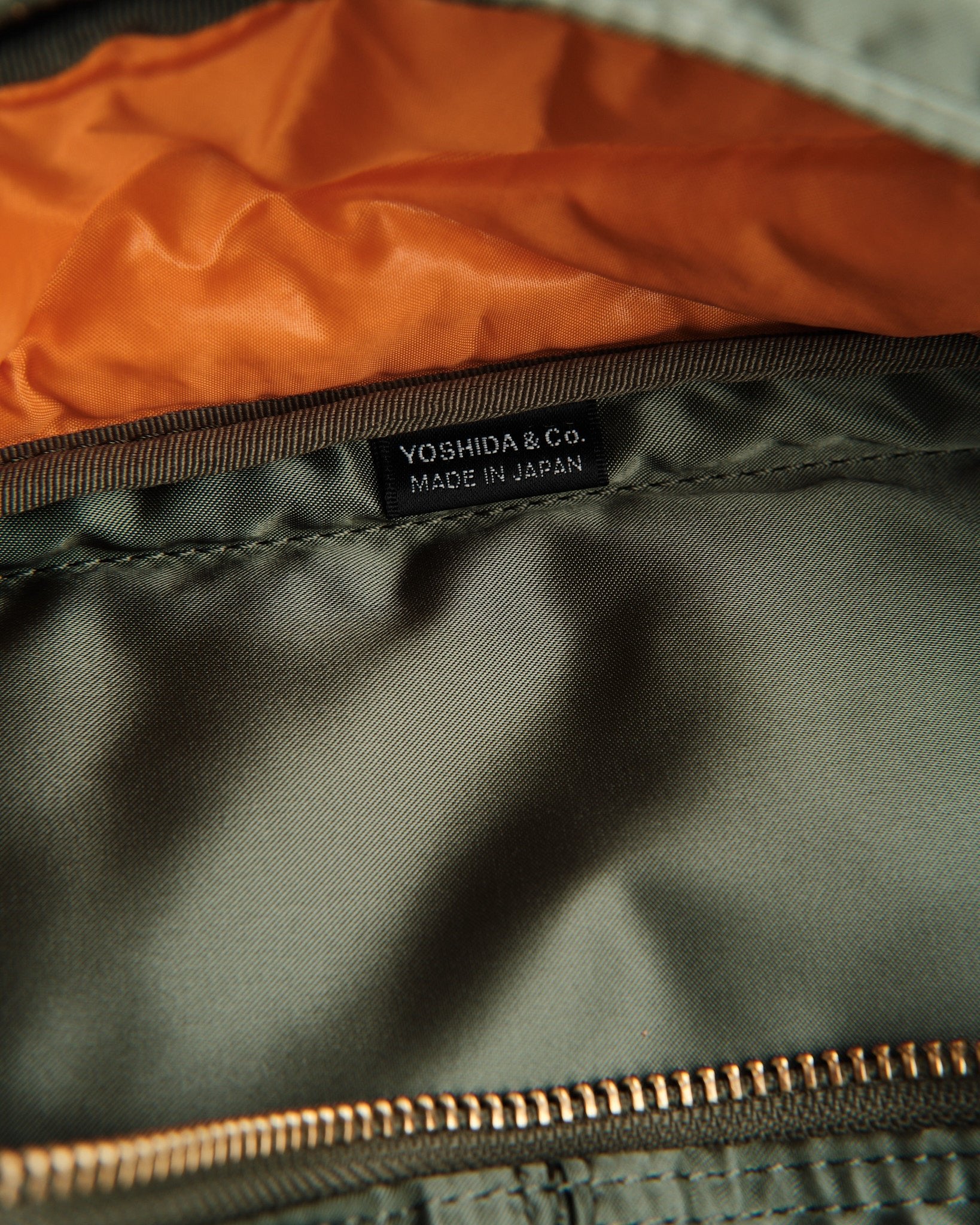 Esittelyssä PORTER YOSHIDA 622-76629-30 TANKER VYÖLAUKKU (S) SAGE GREEN -värissä. Osa Tanker-sarjaa, joka esiteltiin ensimmäisen kerran vuonna 1983, tämä vyölaukku hyödyntää ainutlaatuista kangasta, joka on alun perin luotu Yhdysvaltain ilmavoimien lentotakin MA 1:lle, ja sisältää kirkkaan pelastusoranssin sisävuorin. Sen koko huomioon ottaen se sopii kätevästi vartalolle ja sitä voidaan käyttää sekä vyölaukkuna että olkalaukkuna. Ihanteellinen olennaisuuksien, kuten älypuhelinten ja lompakoiden kantamiseen, siinä on kolme taskua, kaksi sisätaskua, vyötasku ja takavetoketjutasku. Kerrostettu kangas, joka on valmistettu nailontvillistä, polyesteripuuvillasta ja nailontafetasta, on kevyt, mutta kestävä, mikä osoittaa Yoshida&Co:n huomion yksityiskohtiin käsityössä joka käänteessä.