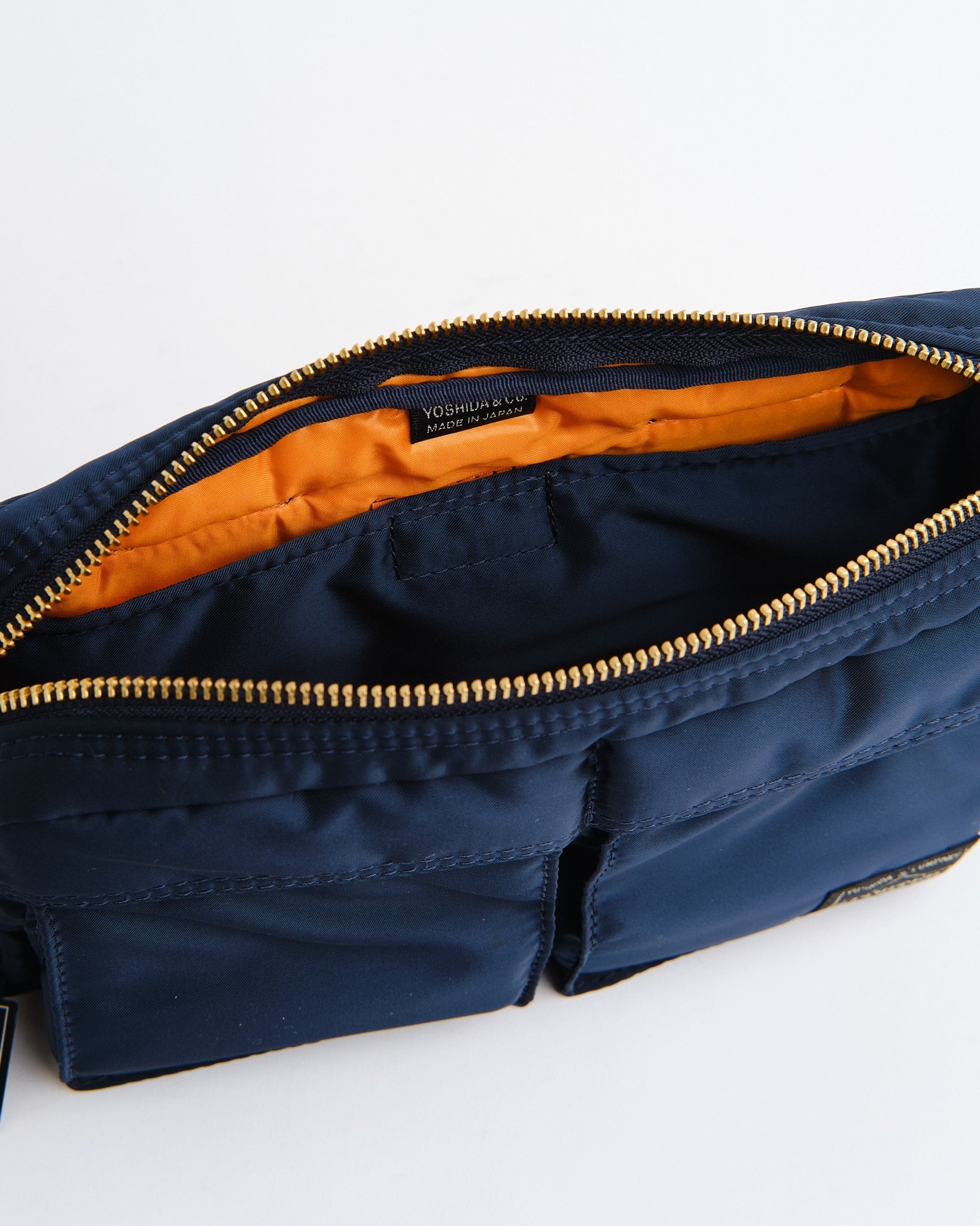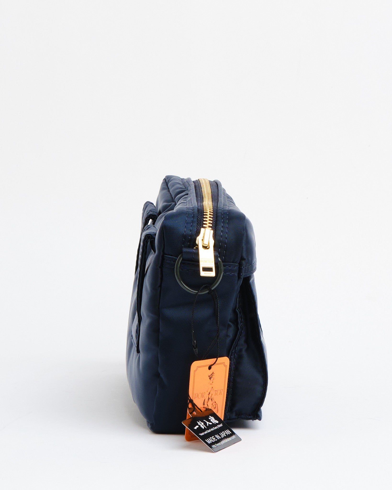 PORTER YOSHIDA TANKER -OLKAHUIVI Iron Blue -värisenä saa inspiraationsa lentotakista, tehden siitä osan kuuluisaa "Tanker"-sarjaa. Tämä laukku esiteltiin ensimmäisen kerran vuonna 1983. Se kerskaa ainutlaatuisella kangaskoostumuksella, jossa on kolme kerrosta; nailonia, polyesteripuuvillaa ja nailontaffetaa. Siinä on turvaoranssi vuori ja se tarjoaa monipuolisuutta irrotettavan ja säädettävän olkahihnan ansiosta. Laukussa on vetoketjullinen osasto, kaksi ulkotaskua, logo-merkki ja ylimääräinen takaosa, joka on suunniteltu vyötärönauhan säilytykseen.