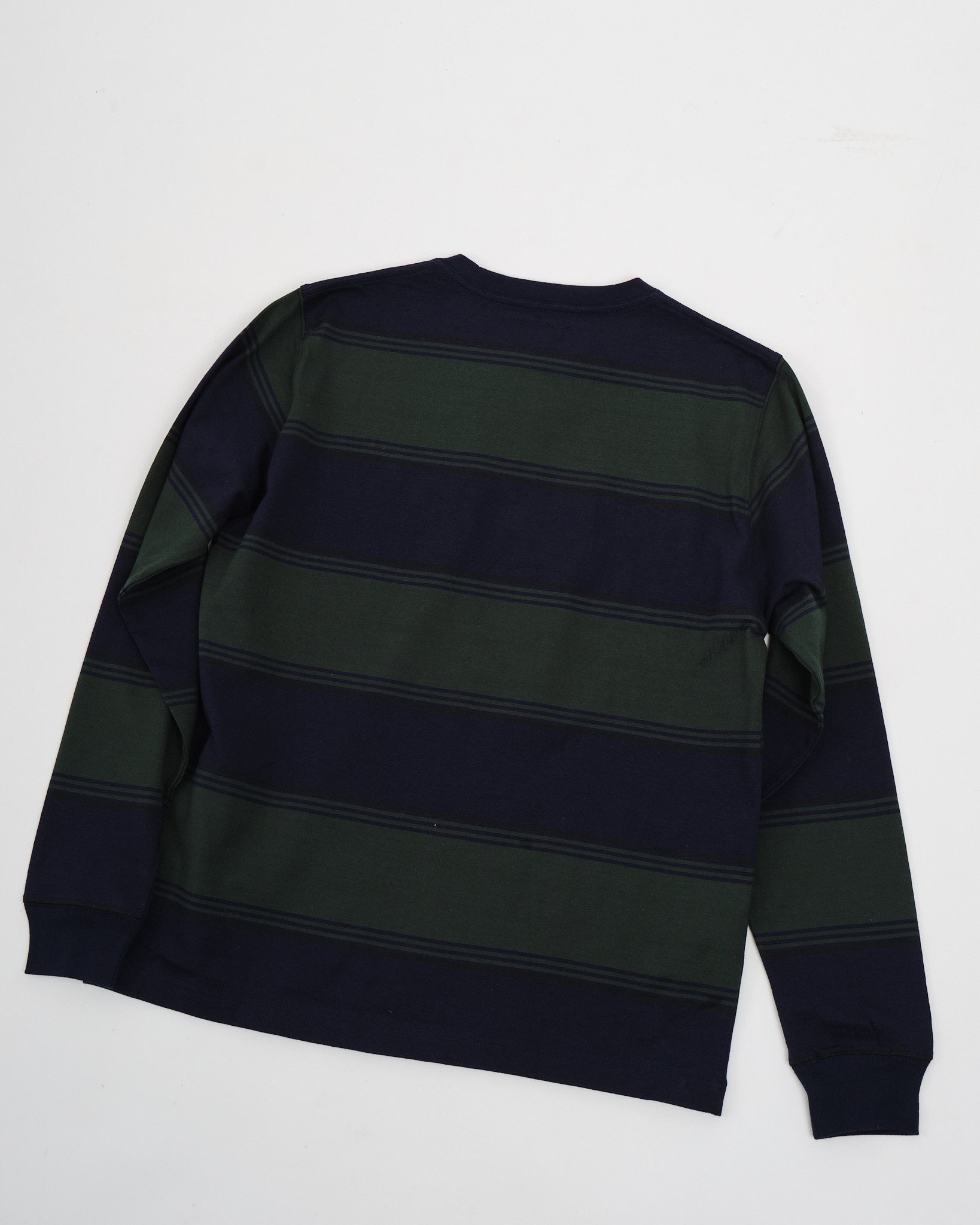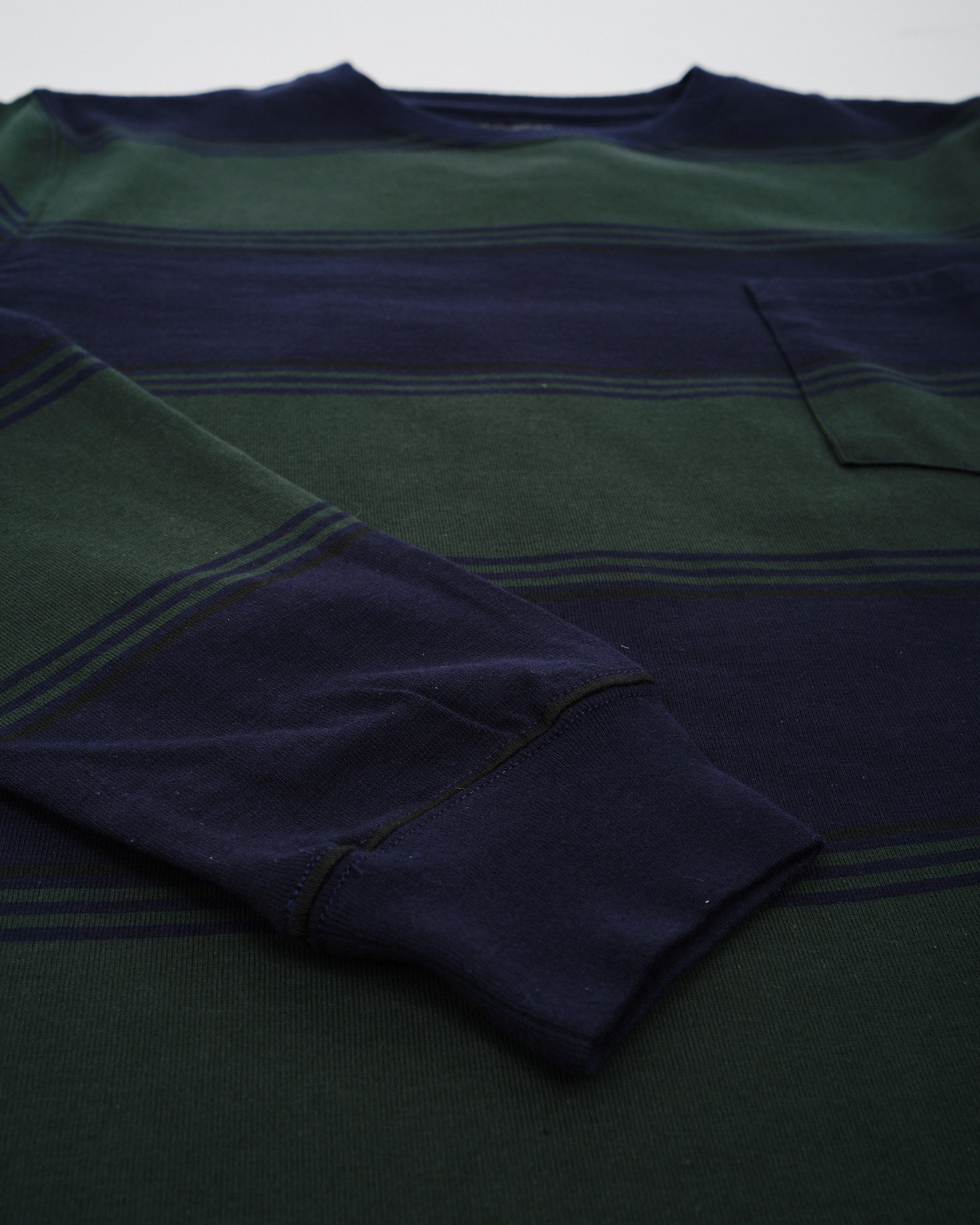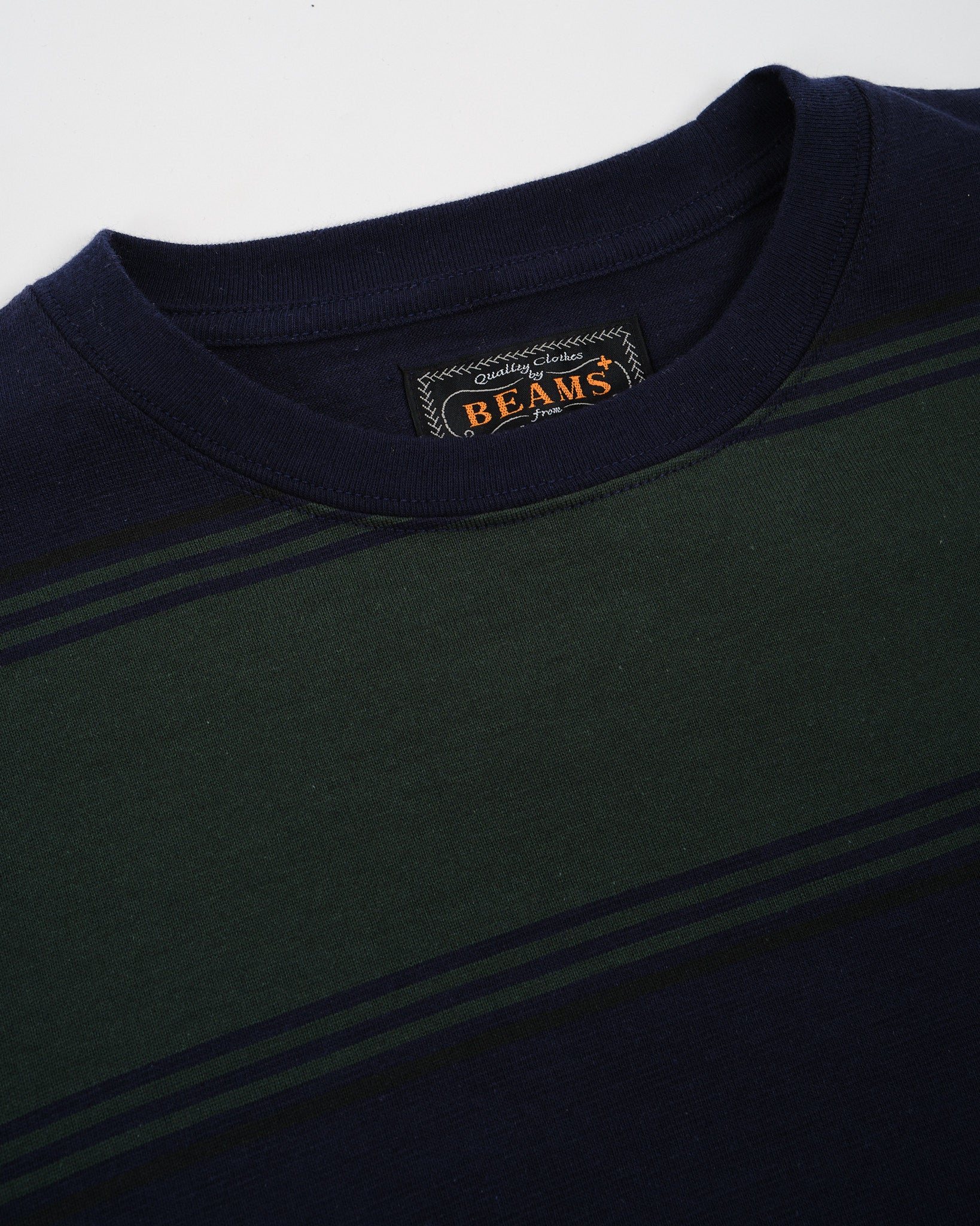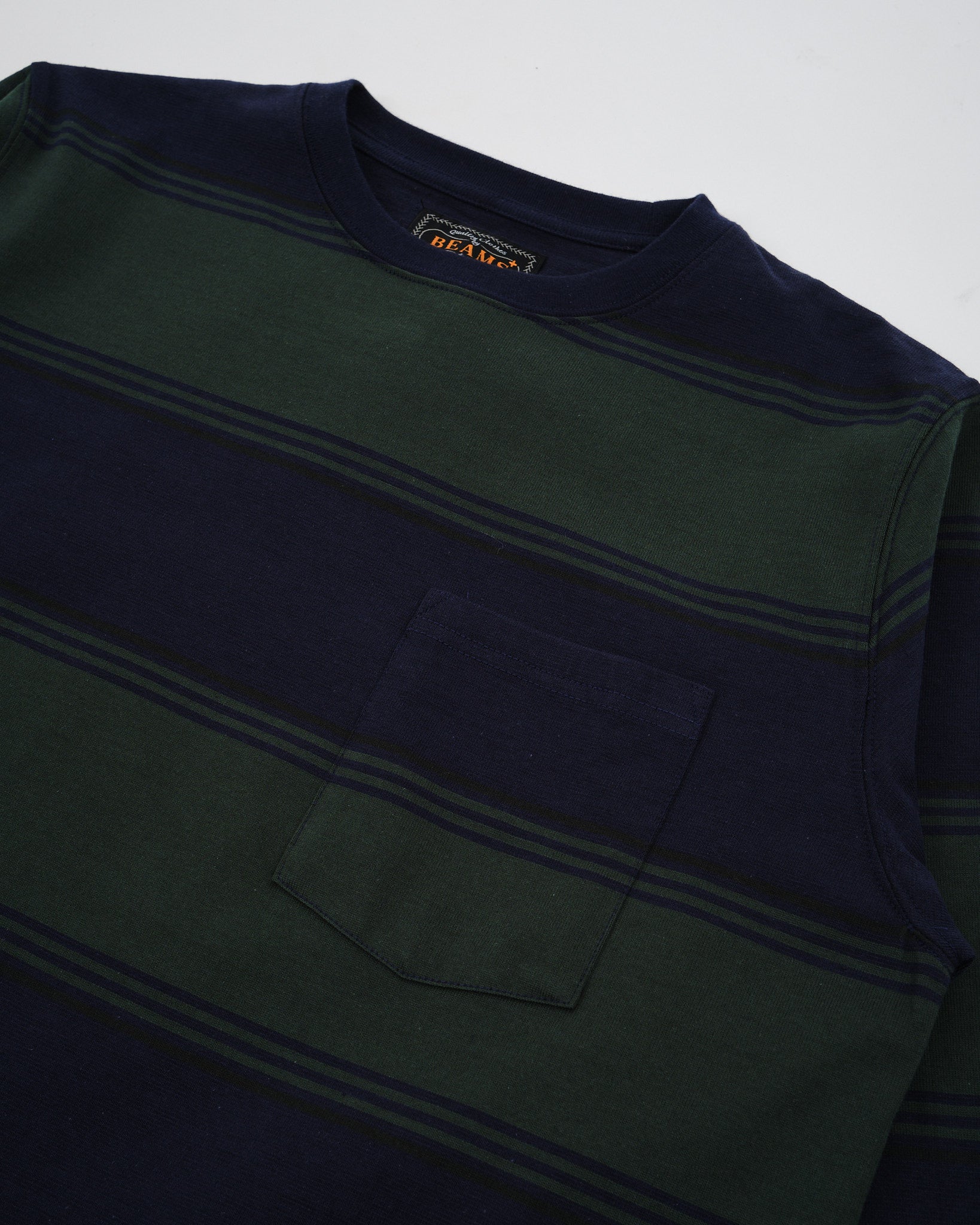 Koe muodin ajaton viehätys Beams+ Pocket Tee Stripe Navy -paidalla. Se on valmistettu käyttäen sekoitusta lankoja, ja tämä paita huokuu ihastuttavasti teksturoitua tunnetta, joka ilmentää retrotyylin olemusta. Valmistettu 100% puuvillasta, joka on hankittu Intiasta, se tarjoaa keskipainoisen tunteen, joka sopii kaikkiin vuodenaikoihin. Oliivinvärinen raidallinen kuvio täydentää täydellisesti ominaisuuksia, kuten pääntietä, hihansuita ja kätevästi sijoitettua rintataskua. Hihansuilla viimeistelty tämä paita takaa ilmeen, joka ei koskaan mene pois muodista.
