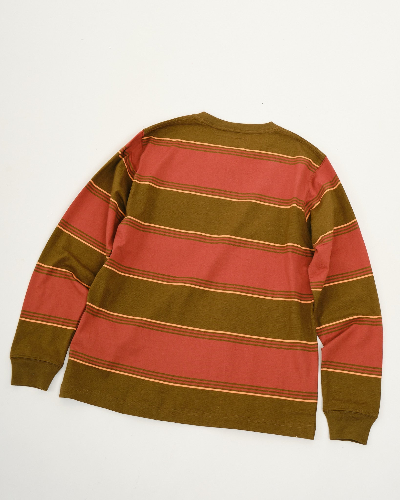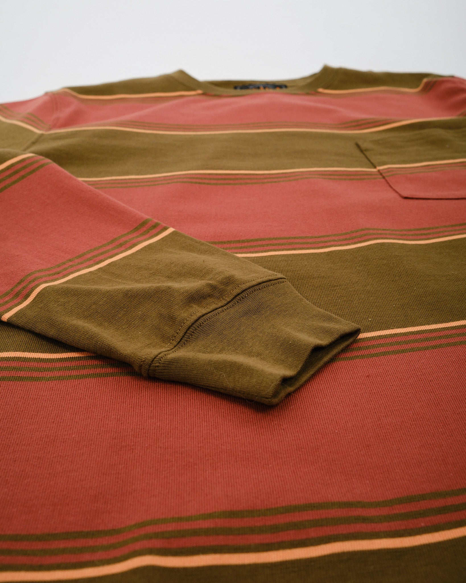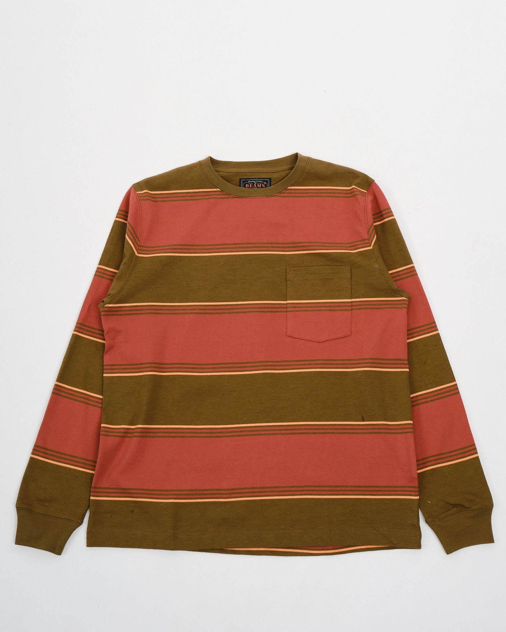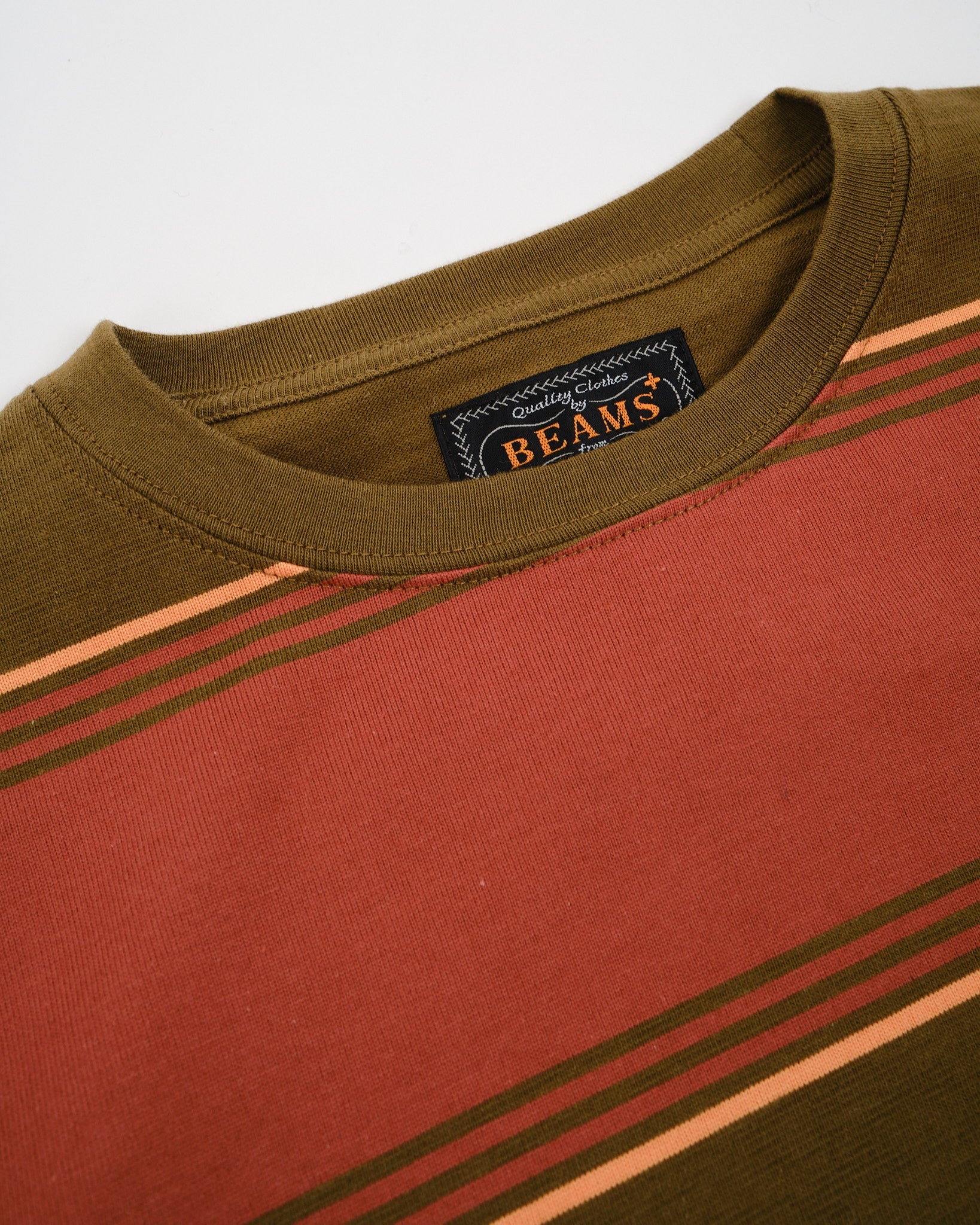 Koe muodin ajaton viehätys Beams+ Pocket Tee Stripe Olive -paidalla. Se on valmistettu käyttäen sekoitusta lankoja, ja tämä paita huokuu ihastuttavan tekstuurisen tunteen, joka ilmentää retrotyylin olemusta. Valmistettu 100% puuvillasta, joka on peräisin Intiasta, se tarjoaa keskipainoisen tunteen sopivan kaikkiin vuodenaikoihin. Oliivinvihreä raidallinen kuvio täydentää täydellisesti ominaisuuksia, kuten pääntietä, hihansuita ja kätevästi sijoitettua rintataskua. Hihansuilla viimeistelty tämä paita takaa ilmeen, joka ei koskaan mene pois muodista.