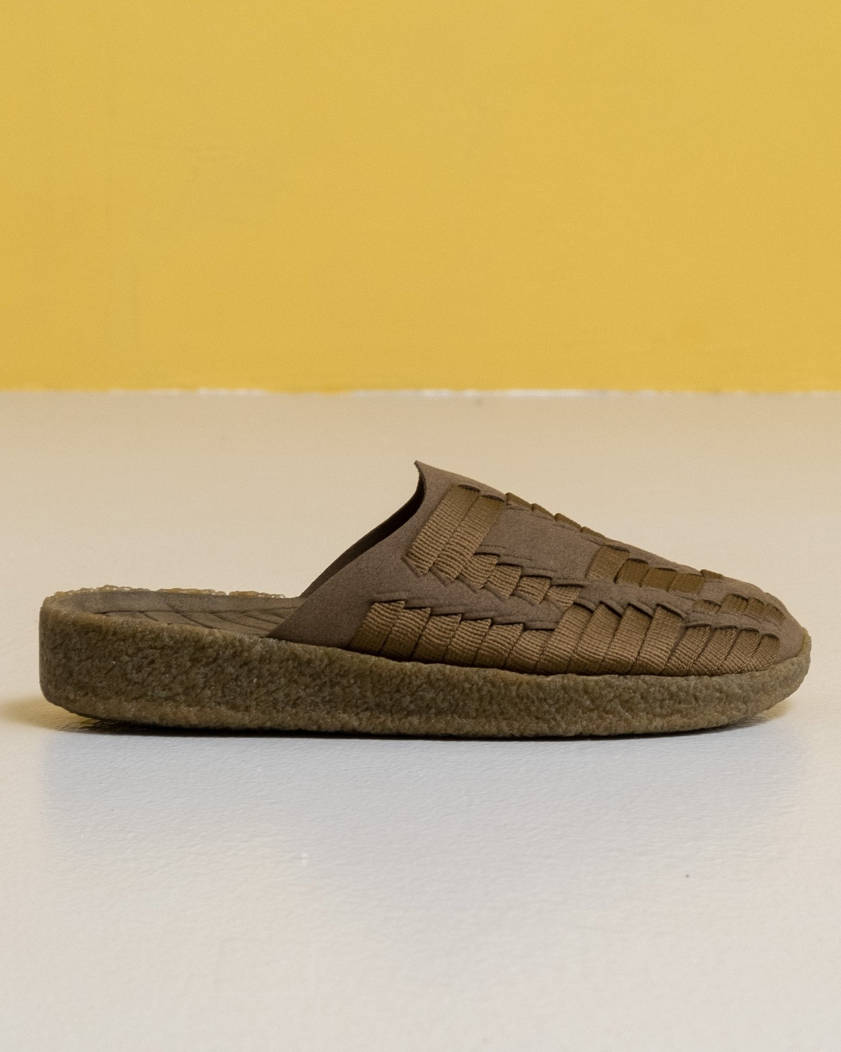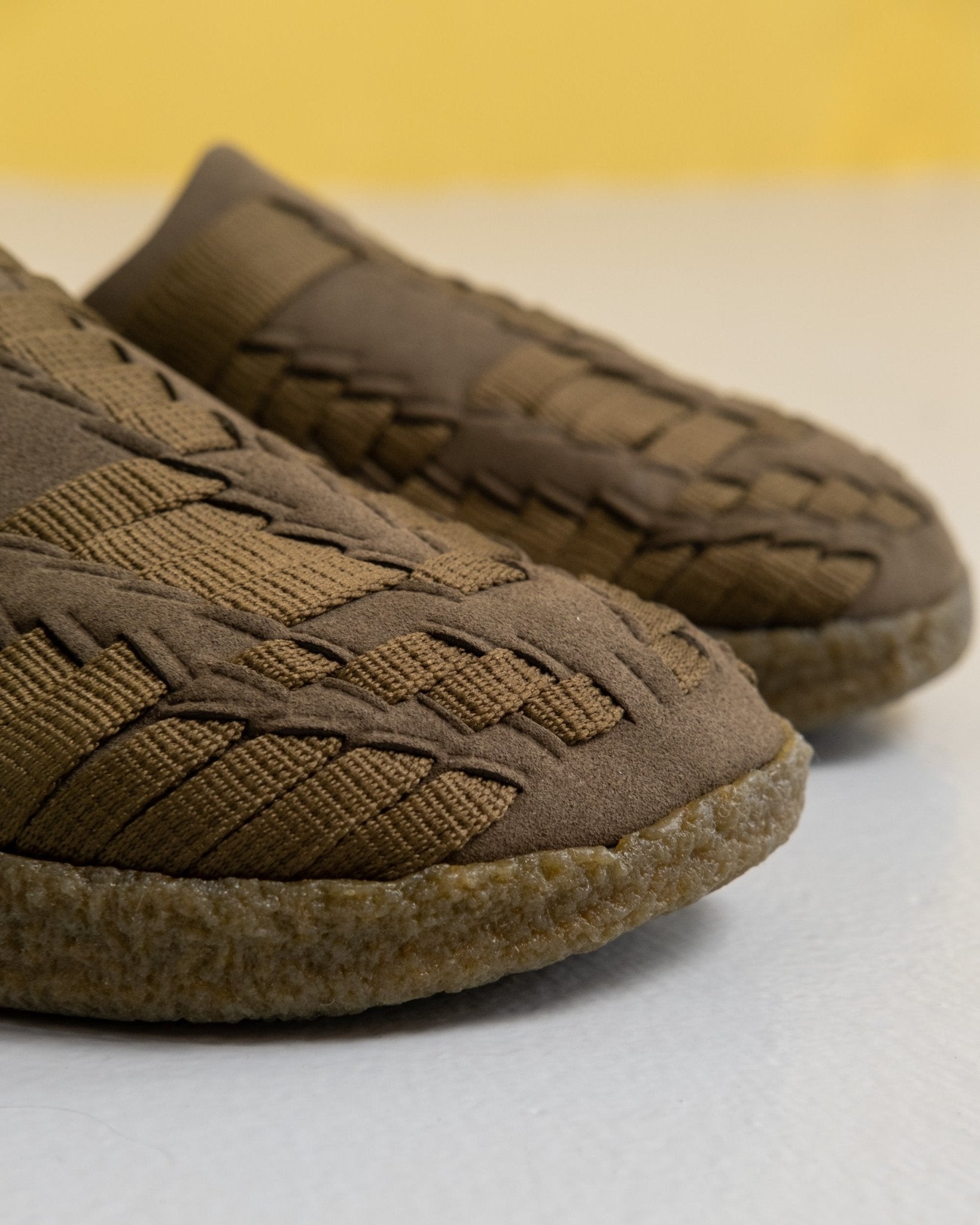 Thunderbird Suede/Vegan Leather Nylon Crepe Gum Sandaalit Olive Malibu Sandalsilta. Käsin kudottu mule-päällinen tarjoaa hyvän tuen nylonista ja mokka/vegaaninahkaisista hihnoista, jotka on valmistettu synteettisestä mikrokuidusta. Mukana kestävä kaksoistiheysulkopohja, joka on pehmustettu ergonomisella pohjallisella. Pohja on valmistettu malesialaisesta kreppikumista. Koko vastaa todellista kokoa. Valmistettu Kambodžassa.