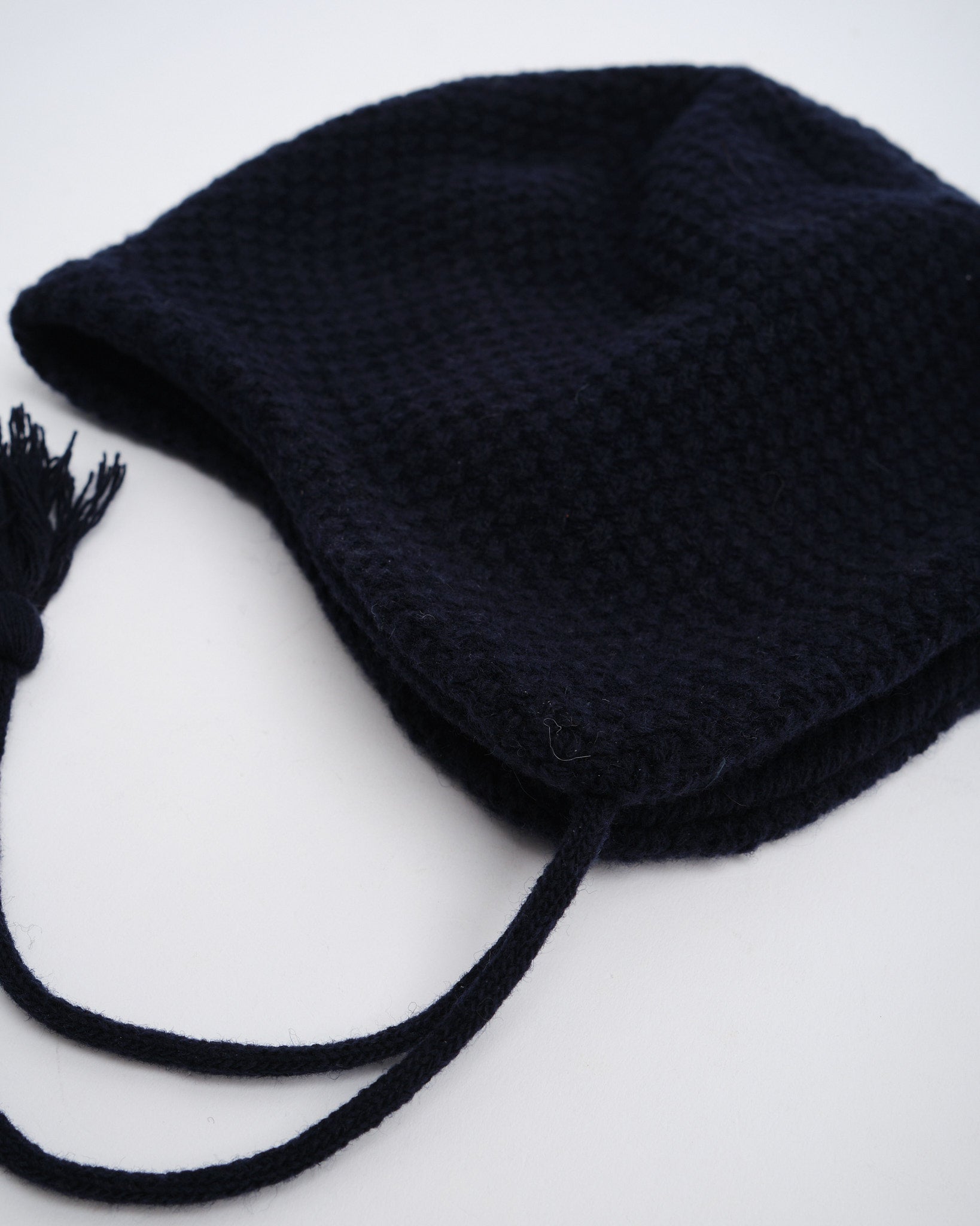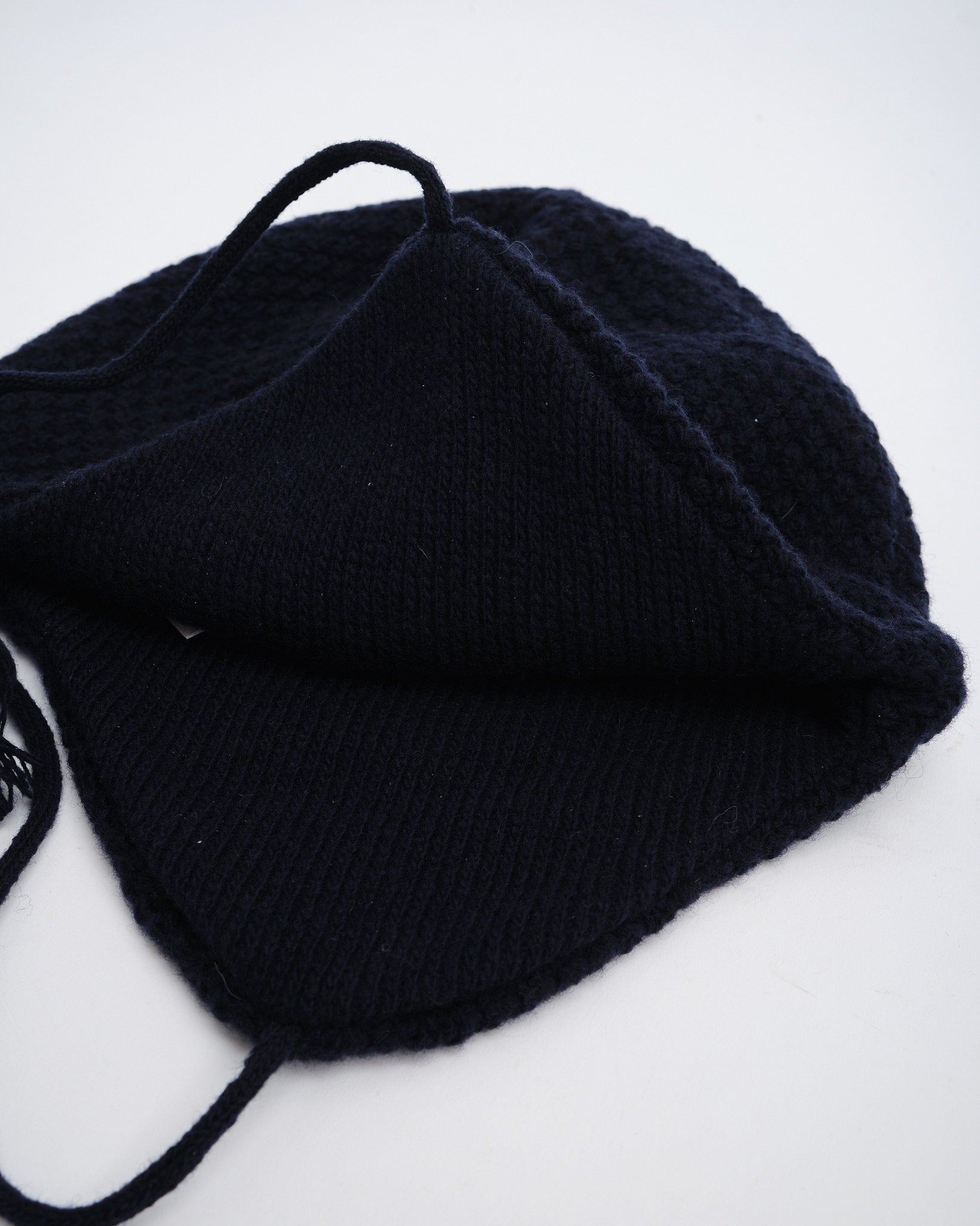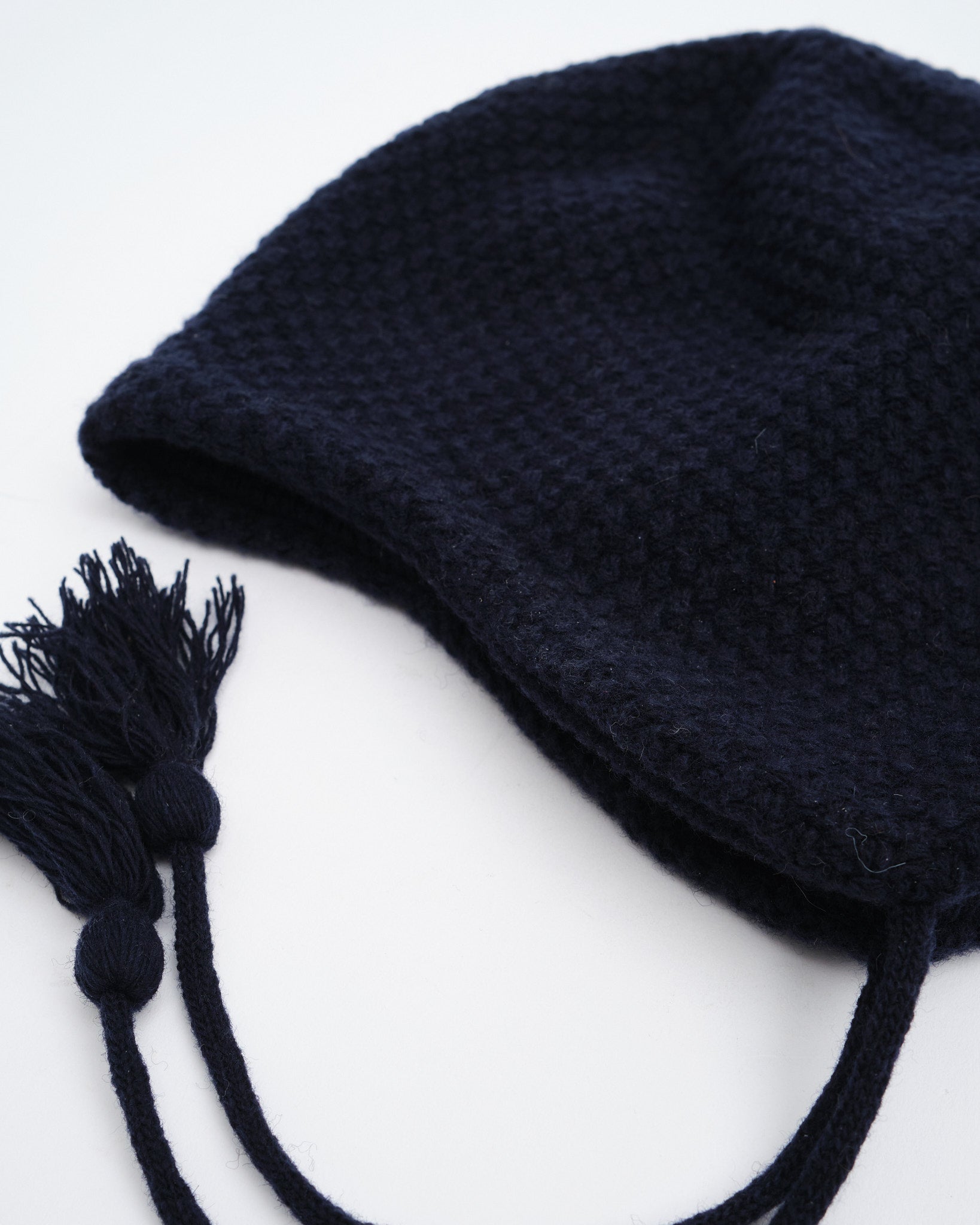 Trek-pipo Navy-värissä Found Featherilta on tehty viileään säähän ja jokapäiväiseen seikkailuun. Japanissa valmistettu, pestävästä lampaanvillasekoitteesta valmistettu pipo, jossa on dobby-kaapelikuvioinen neule ja harjattu sisäpuoli lisää pehmeyttä. 8,5 cm:n korvalehdet ja itse tehty nyöri ja tupsut lisäävät sekä viehätysvoimaa että toiminnallisuutta, kun taas yhden paneelin rakenne tarjoaa siistin siluetin. Mukavan, unisex-mitoituksen ja QR-koodatun hoito-ohjeen ansiosta tämä pipo on valmis kaupunkiretkiin tai maaseudun pakomatkoihin.