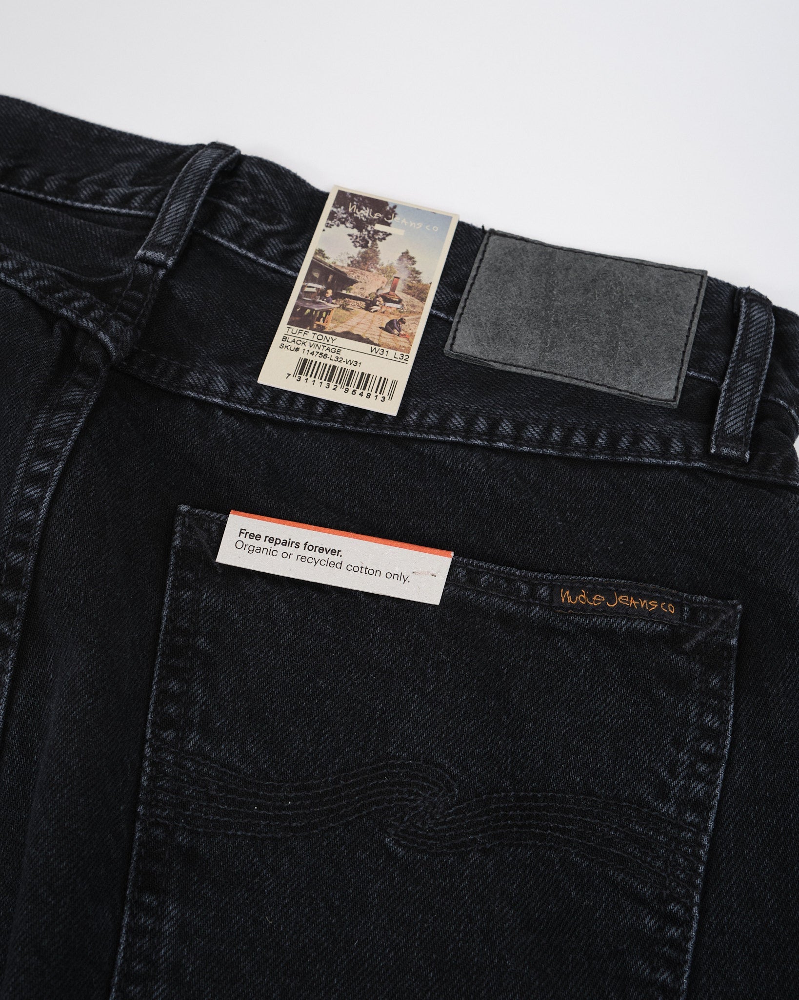 Nudie Jeans Co Tuff Tony Black Vintage Black Vintage-värisenä yhdistää rennon istuvuuden karheaan estetiikkaan, tehden siitä ajattoman lisän mihin tahansa vaatekaappiin. Korkealaatuisesta luomupuuvilladenimistä valmistetut farkut esittelevät Nudien sitoutumista kestävään muotiin. Black Vintage -pesu tarjoaa hienovaraista haalistumista ja whiskeringia, tarjoten aitoa kulunutta ilmettä säilyttäen samalla modernin reunan. Vapaalla, suoralla lahkeella ja perinteisellä viiden taskun tyylillä varustettu Tuff Tony sopii täydellisesti vapaa-ajan käyttöön ja on tarpeeksi monipuolinen erilaisiin asukokonaisuuksiin. Heijastaen Nudien omistautumista käsityötaitoon ja kestävyyteen, nämä farkut on tehty kestämään.