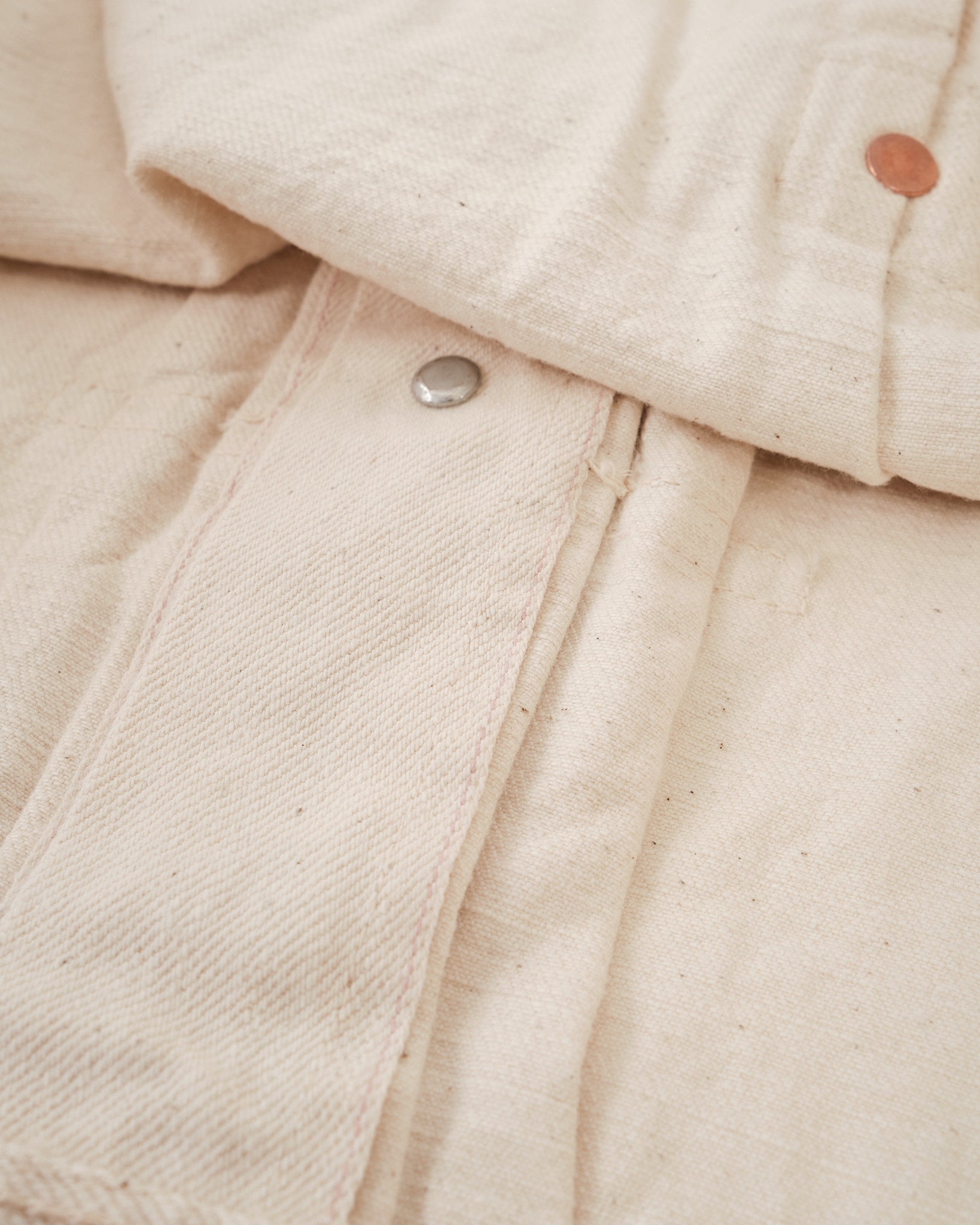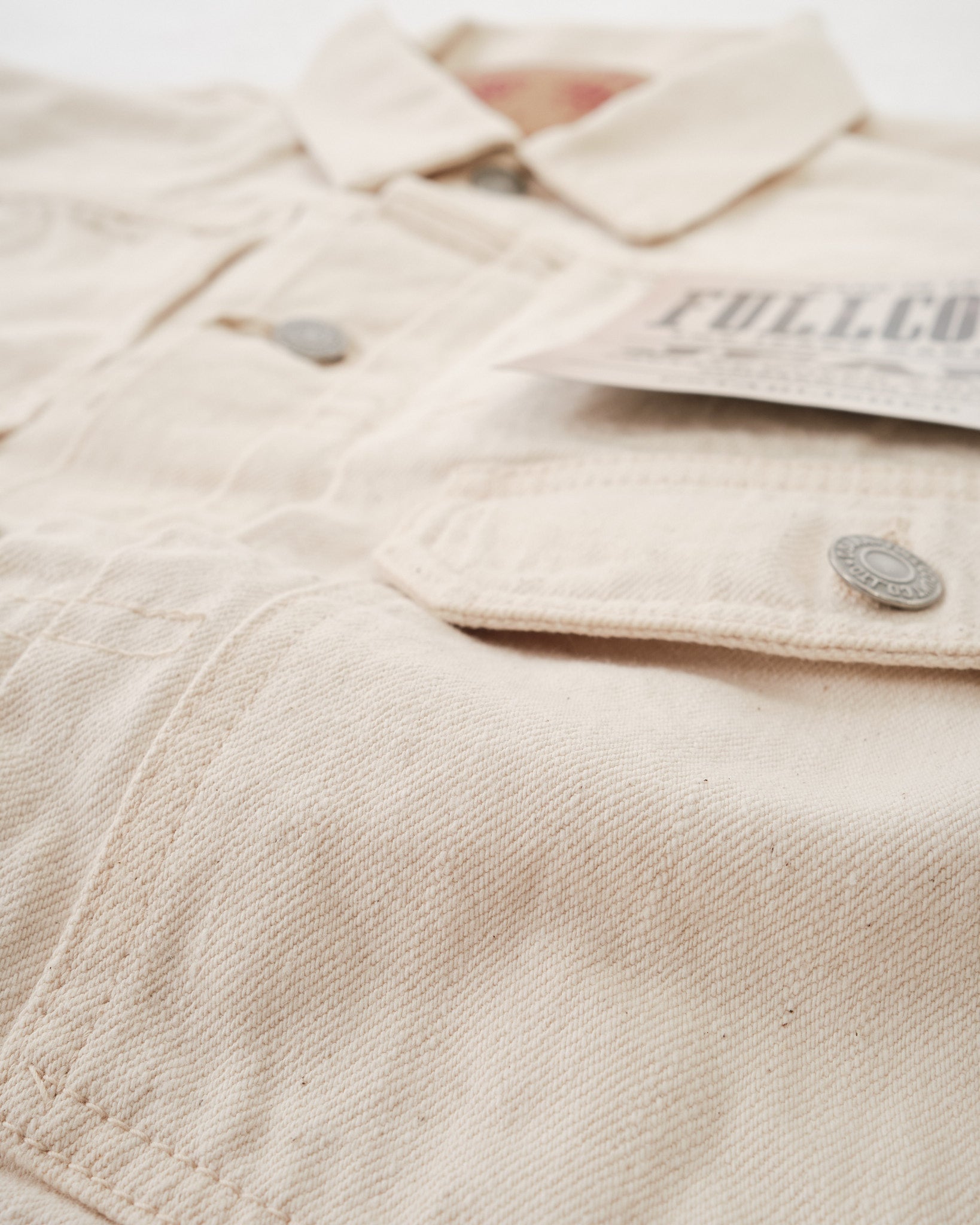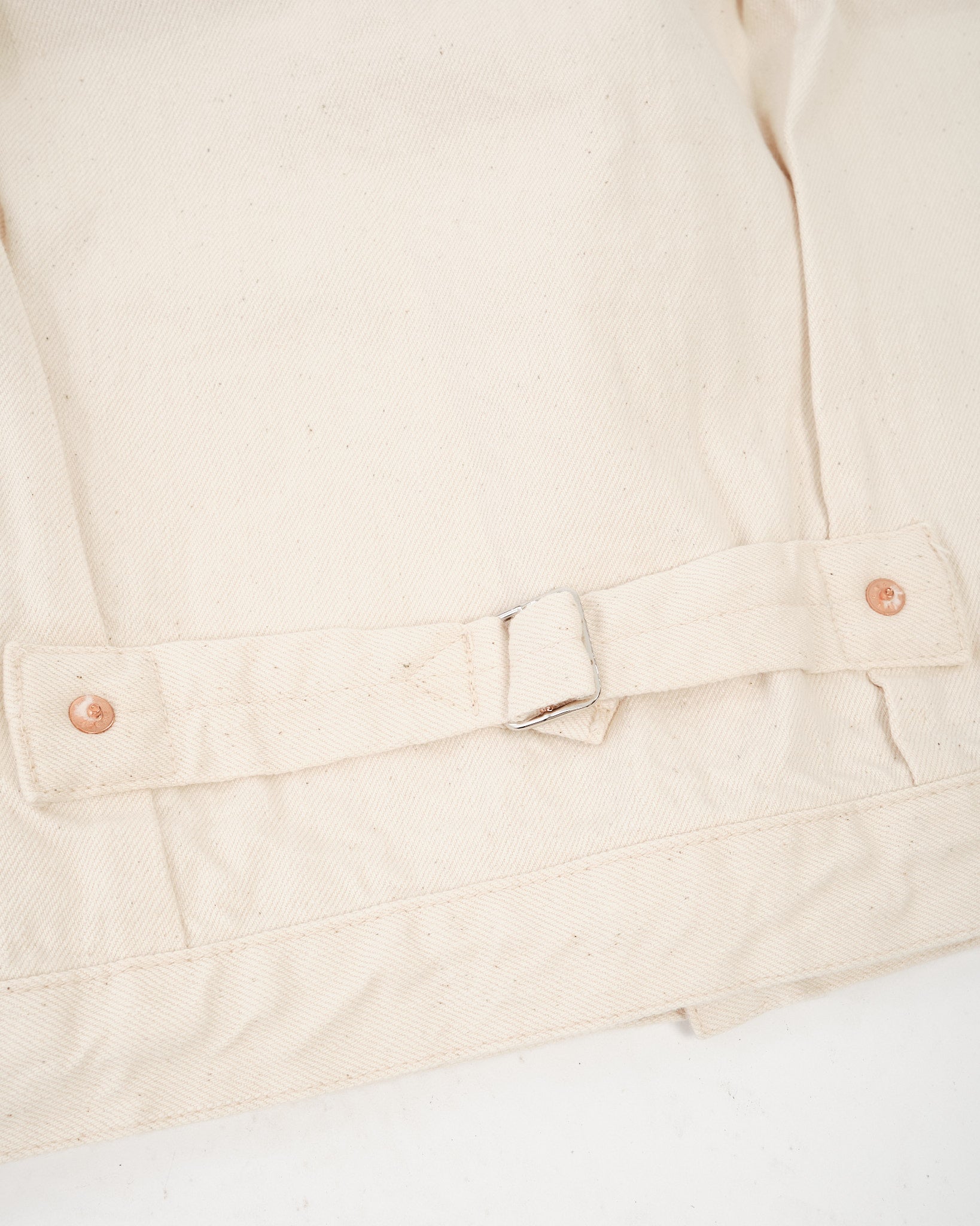 2107EC TYPE 1 DENIM TAKKI, joka on inspiroitunut varhaisen 20-luvun työvaatteista Laadukas ecru-denim luonnollista, vintagesta inspiroitunutta ilmettä varten Yksi rintatasku autenttista Type 1 siluettia varten Pliseerattu etuosa lisää rakennetta ja kestävyyttä Selkäpuolen säätö mahdollistaa muokattavan istuvuuden Selvää reunakonstruktiota kestävän laadun varmistamiseksi Vuoriton helppo kerrostaminen missä tahansa vuodenajassa Ikääntyy kauniisti ainutlaatuisella patinalla ajan myötä Ajaton muotoilu, joka sopii hyvin sekä vapaa-ajan että työasuihin Tuotekoodi: 2107EC