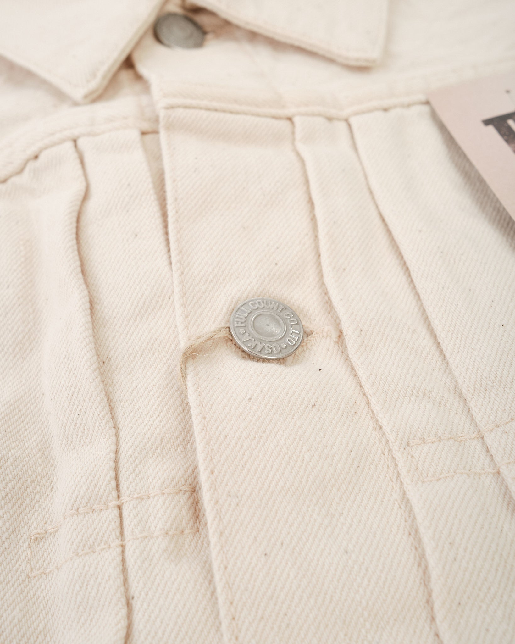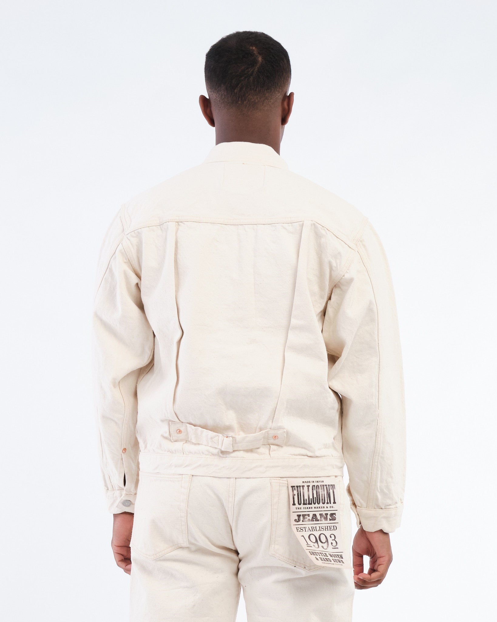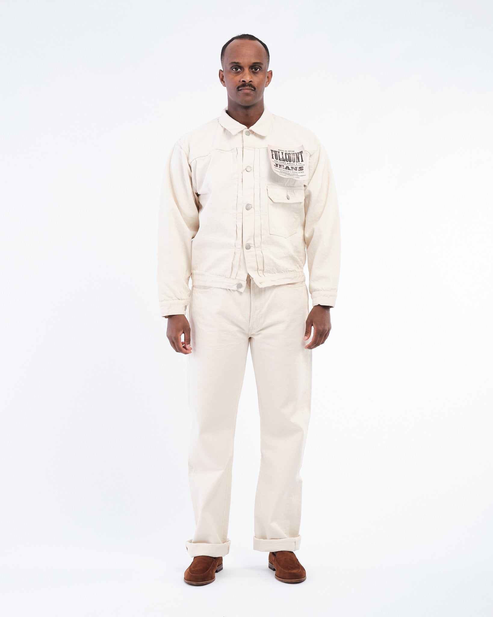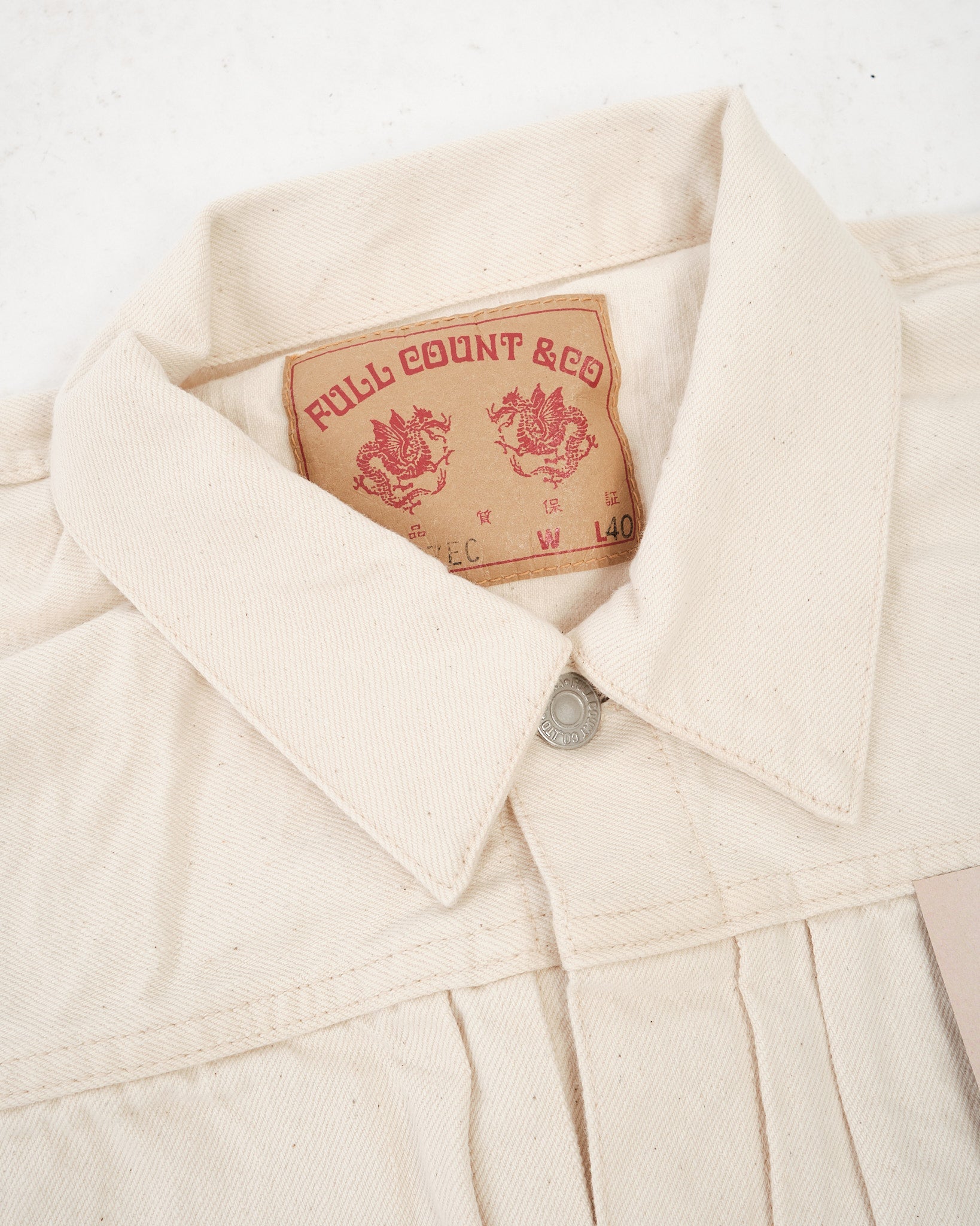 2107EC FULL COUNT TYPE 1 ECRU DENIM TAKKI (2107EC) yhdistää perinteisen käsityötaiton ja ajattoman tyylinsä. Inspiroituneena klassisista varhaisen 20. vuosisadan denim-takeista, tämä kappale on valmistettu premium-luokan ecru-denimistä, tarjoten puhtaan, luonnollisen ilmeen aidolla vintage-tuntumalla. Yksittäinen etutasku, laskostetut yksityiskohdat ja säädettävä takakiristys pysyvät uskollisina ikoniselle Type 1 siluetille, samalla kun korkealaatuinen kangas takaa kestävyyden ja mukavuuden. Täydellinen kerrospukeutumiseen missä tahansa vuodenajassa, tämä takki ikääntyy kauniisti, kehittäen ajan myötä uniikin patinan.