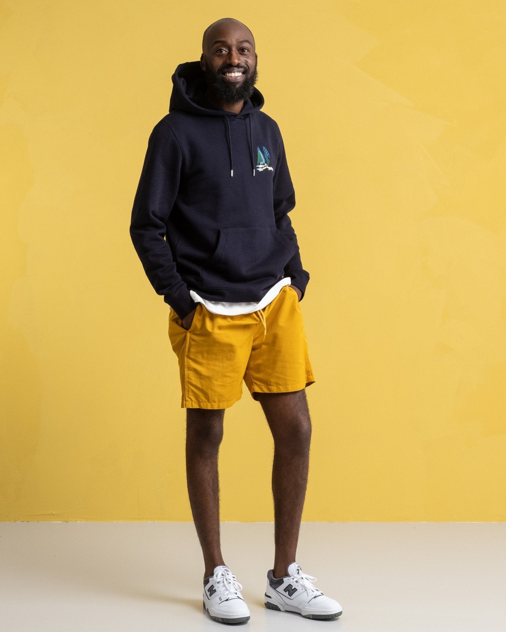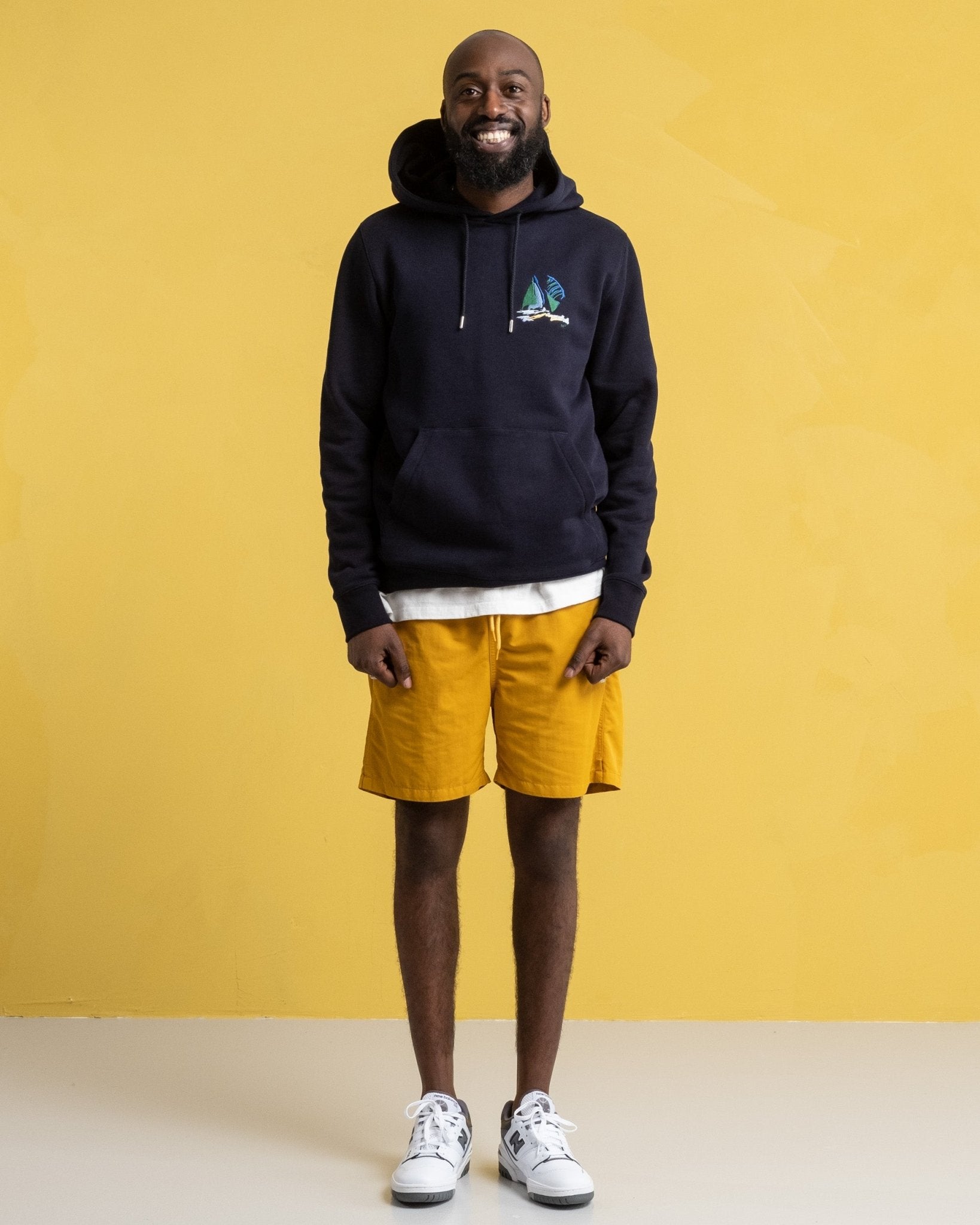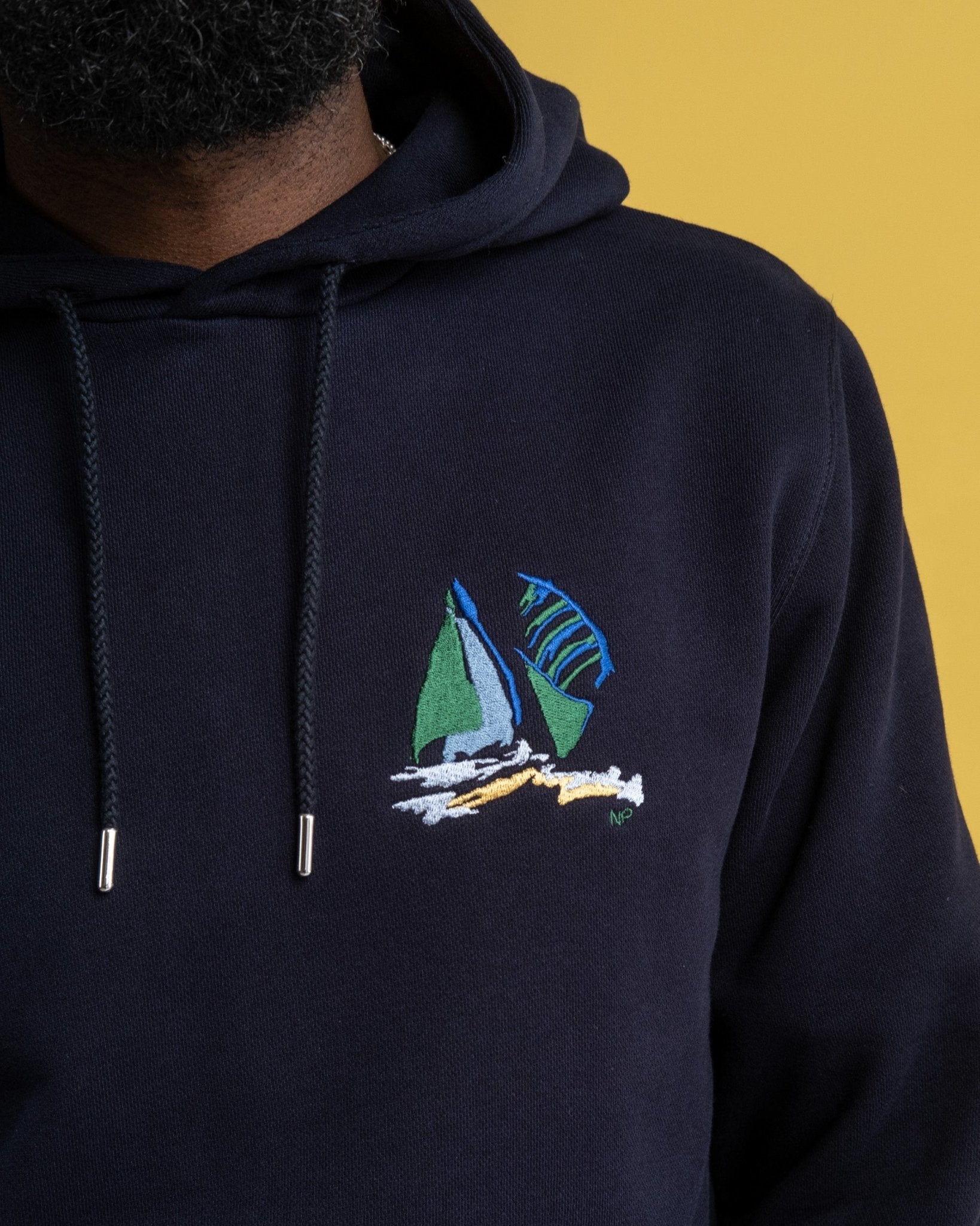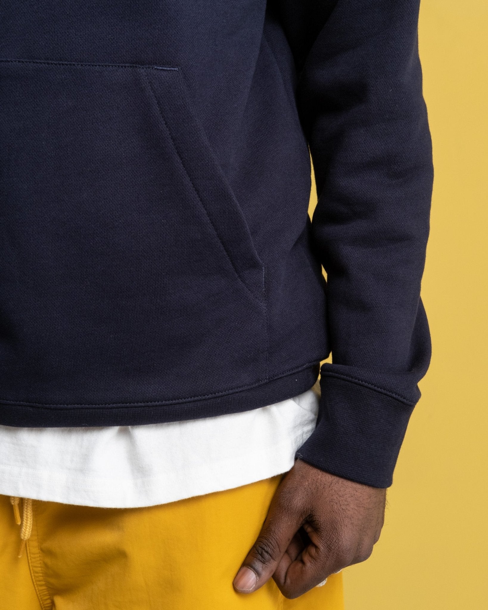 Vagn Hood Boat Embroidery Dark Navy Norse Projectsilta. Tavallinen istuvuus huppari valmistettu silmukkatakkuisesta luomupuuvillafleecestä. Mukana säädettävä huppu, joustavat helma ja hihansuut, kengurutasku ja kirjailtu rintalogo. Valmistettu Portugalissa.