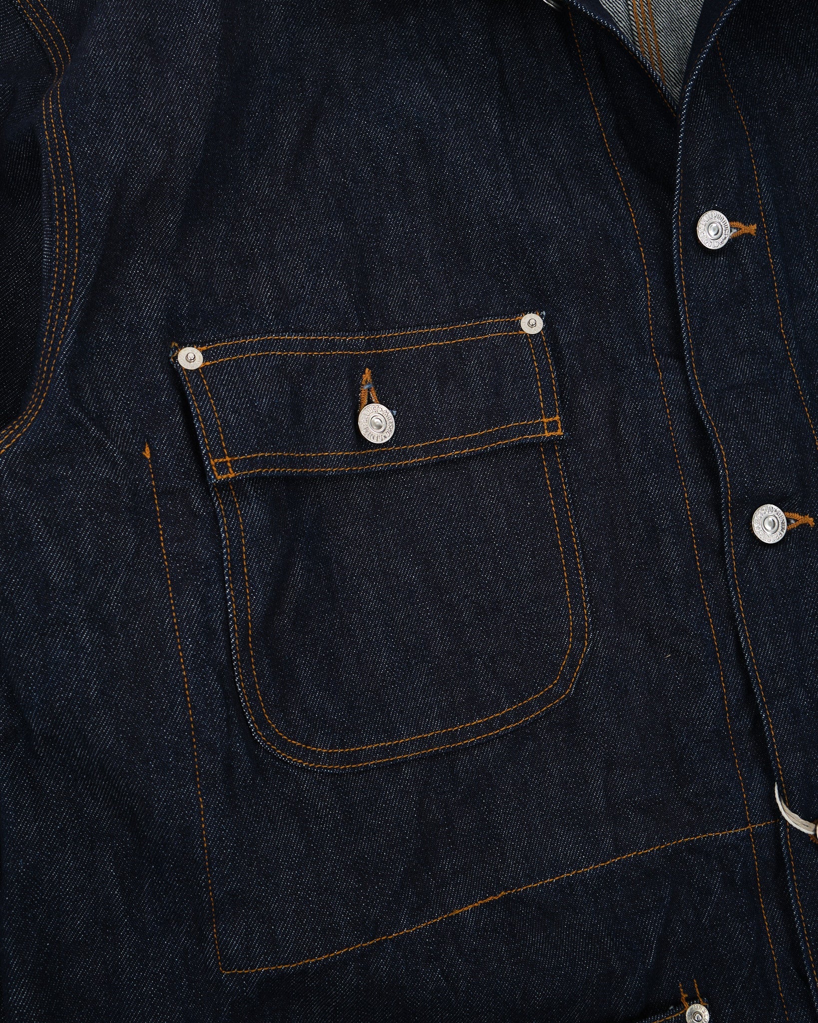 • Materiaali: Valmistettu 13 oz japanilaisesta reunavahvistetusta denimistä kestävyyden ja mukavuuden varmistamiseksi.