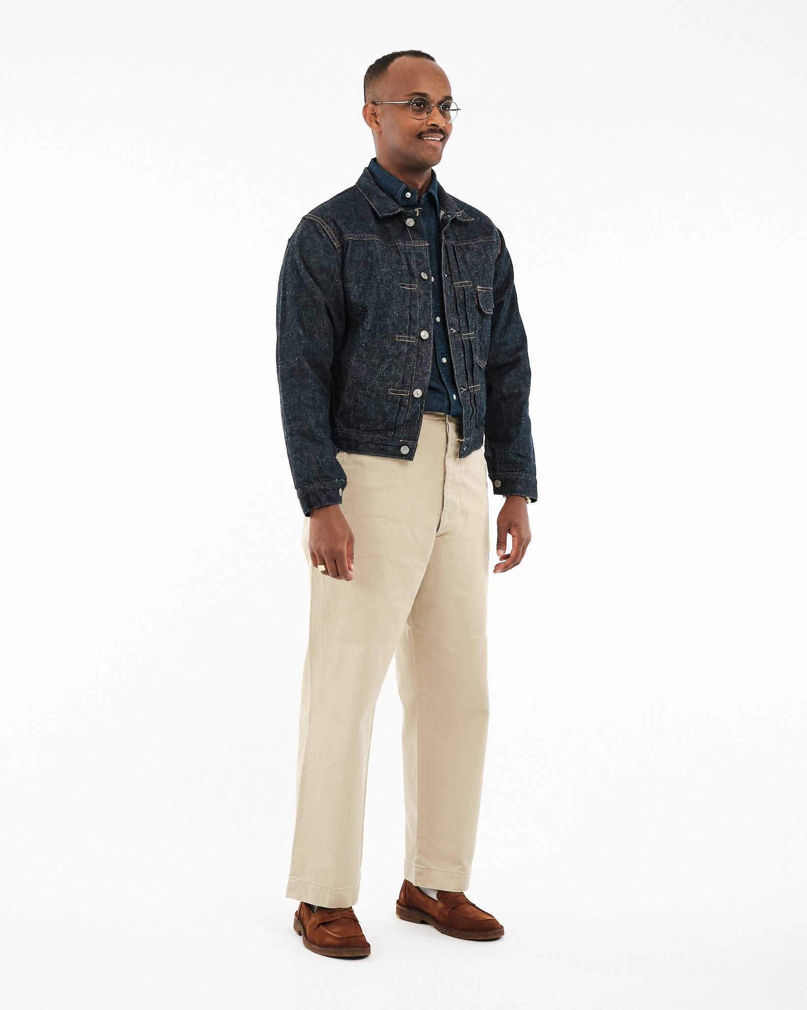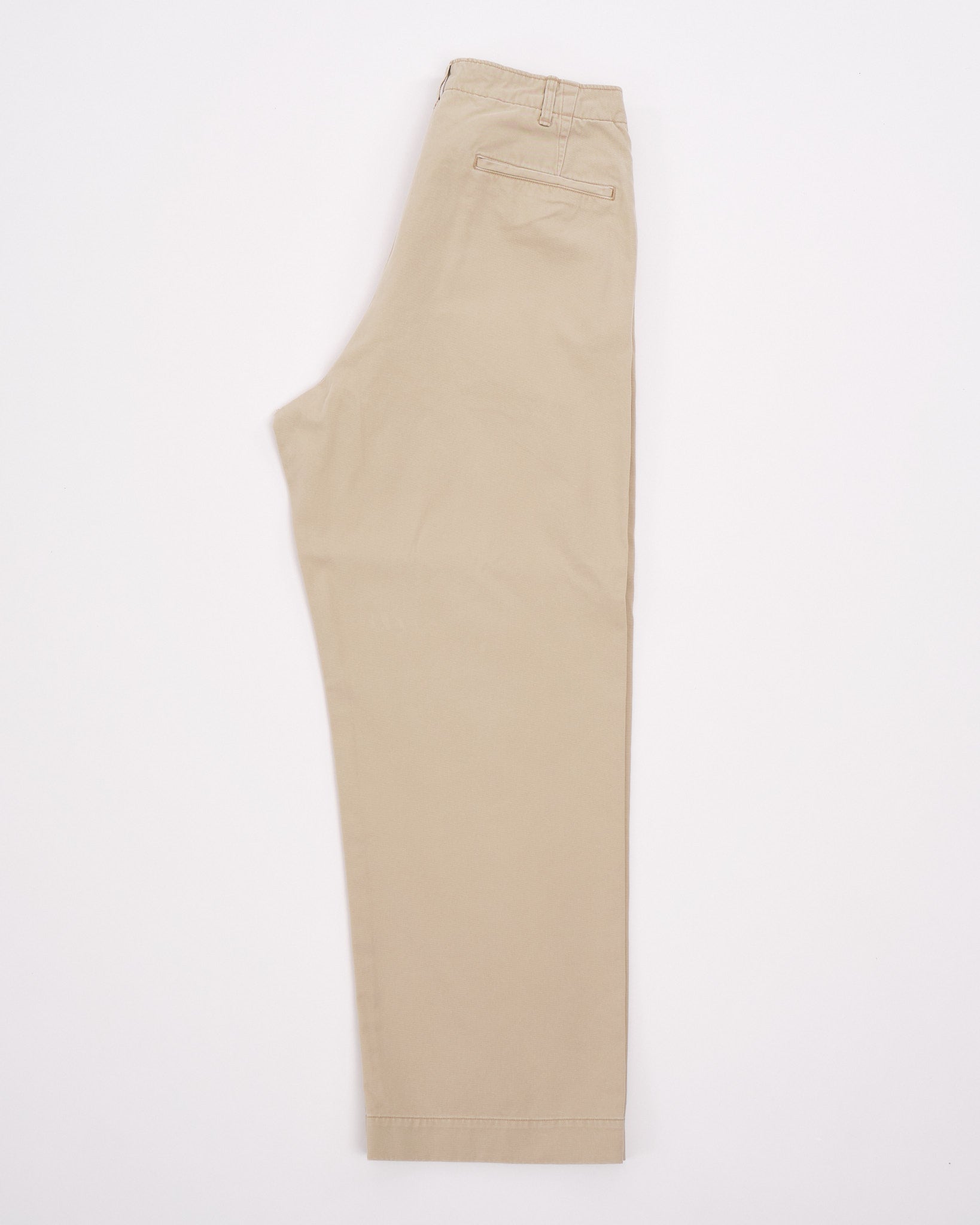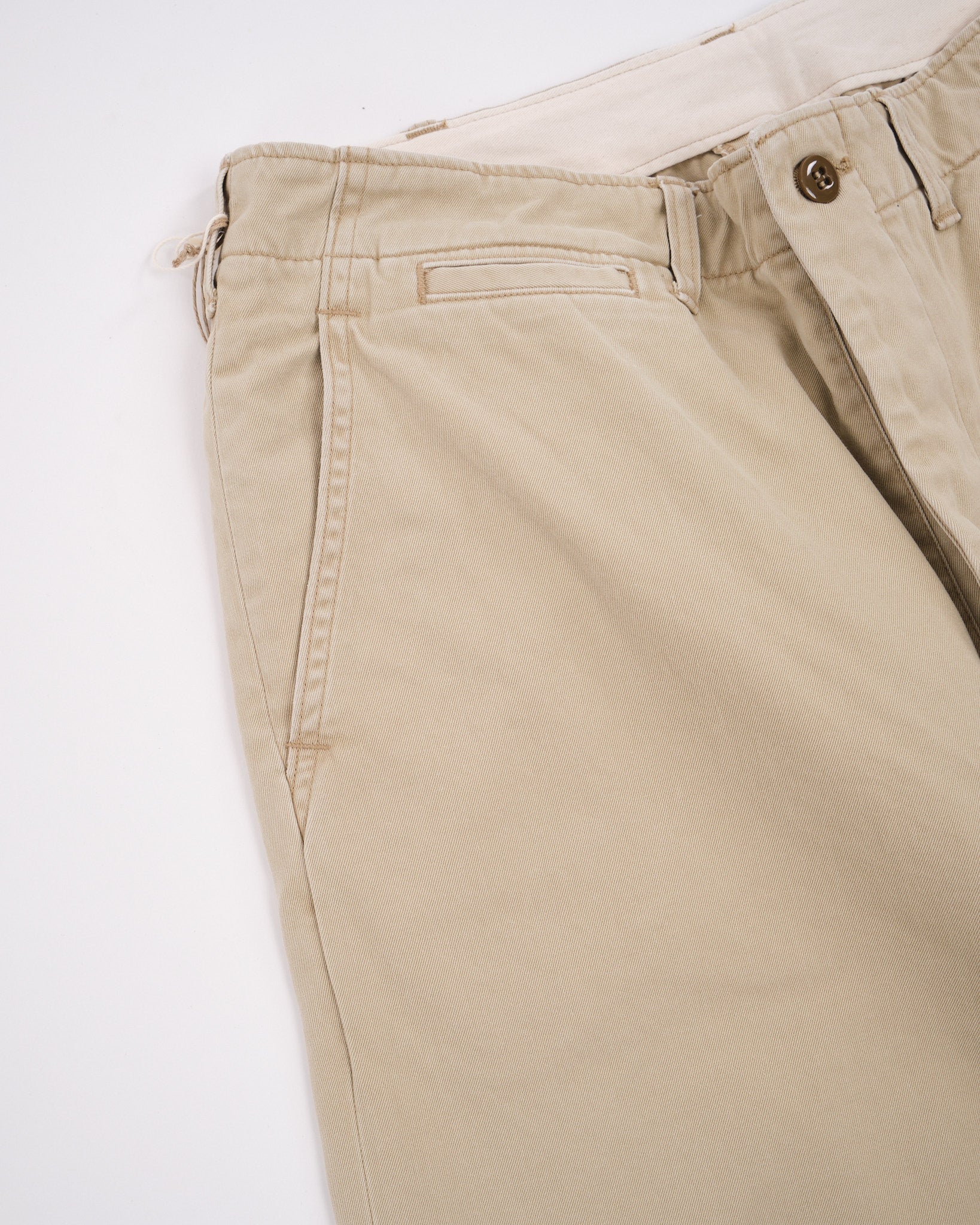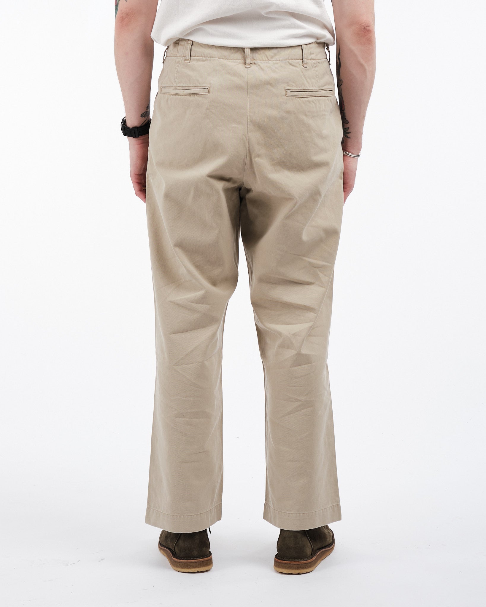 orSlow Vintage Fit Army Trousers in Khaki Stone Wash ovat moderni kunnianosoitus klassisille 1940-luvun Yhdysvaltain sotilaschinoille. Japanissa valmistetut housut on tehty kestävästä, tiiviisti kudotusta 100% puuvillachinokankaasta, mikä tarjoaa kestävyyttä ja mukavuutta. Vintage-malliin kuuluu korkea vyötärö ja leveät lahkeet, joissa on lievä kapenevuus, tarjoten rennon mutta rakenteellisen siluetin. Yksityiskohtiin kuuluvat napillinen sepalus, sivutaskut, kaksi takataskua ja kolikkotasku, jotka korostavat niiden utilitaarista viehätystä. Kivipesuviimeistely lisää käytetyn tuntua, tehden niistä monipuolisen lisän mihin tahansa vaatekaappiin.
